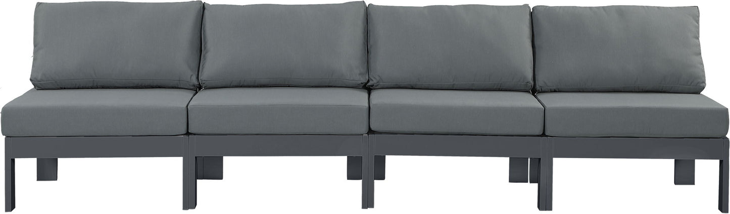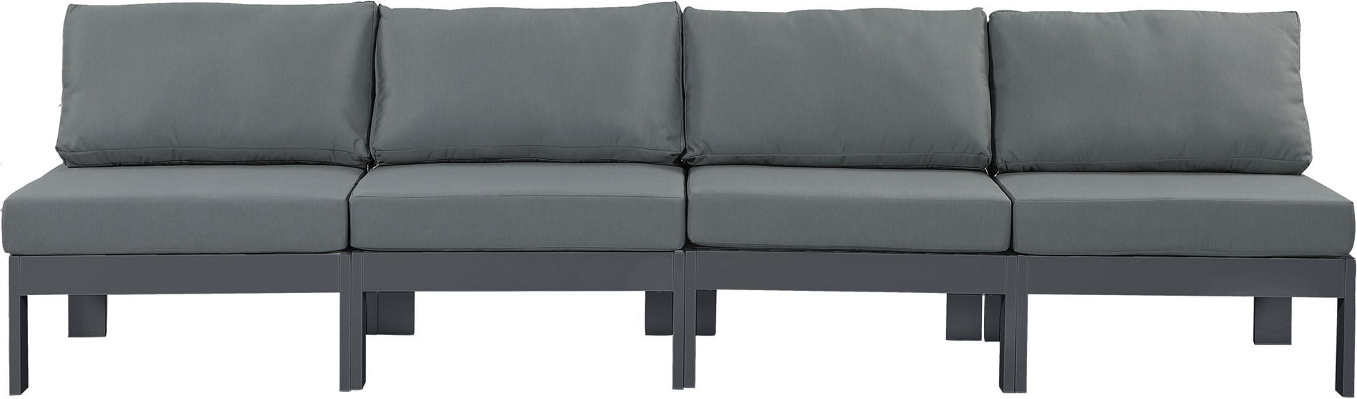 Nizuc - Outdoor Patio 4 Seat Armless Modular Sofa With Gray Frame