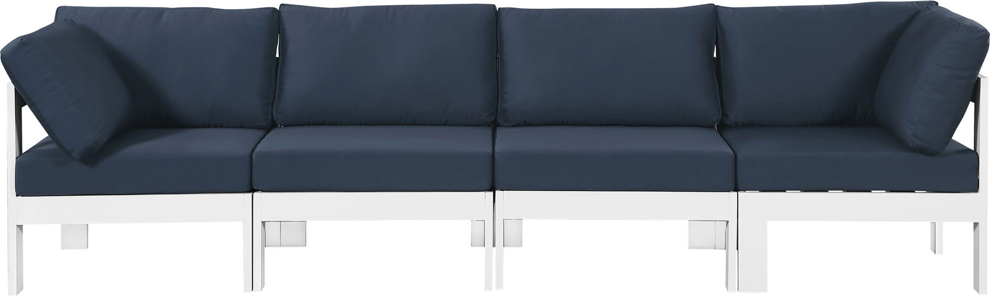 Nizuc - Outdoor Patio 4 Piece Modular Sofa With White Frame - Navy