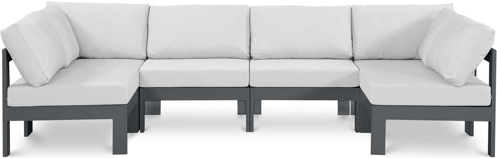 Nizuc - Outdoor Patio 6 Piece Modular U-Shaped Sectional With Gray Frame - White