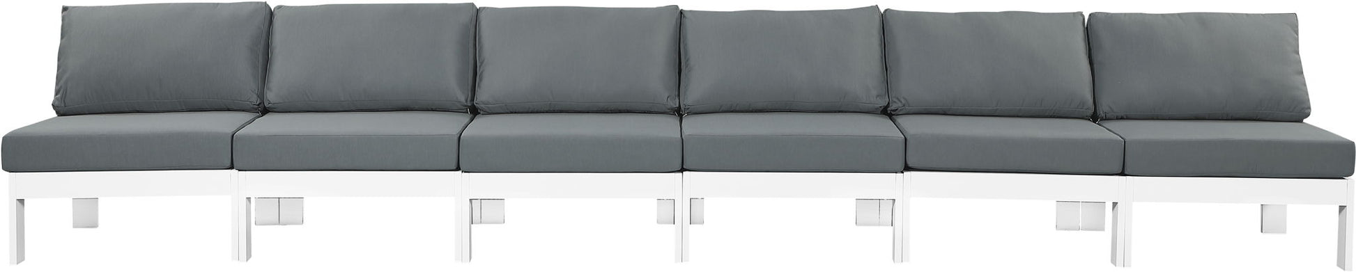 Nizuc - Outdoor Patio 6 Piece Armless Modular Sofa With White Frame - Gray