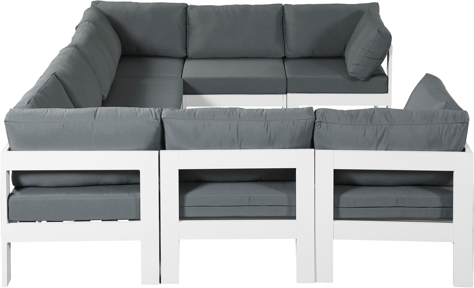 Nizuc - Outdoor Patio 8 Piece Modular U-Shaped Sectional With White Frame - Gray
