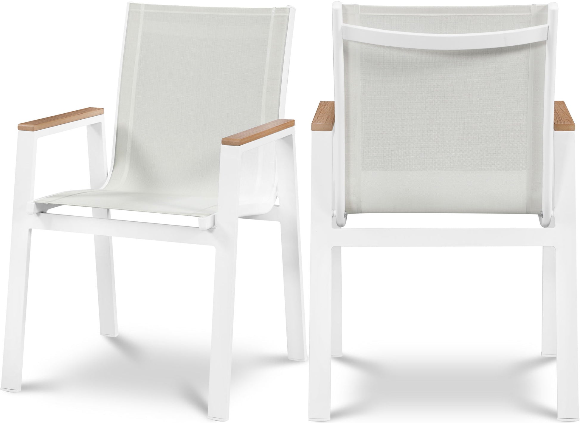 Nizuc - Outdoor Patio Dining Arm Chair With White Frame And Natural Arms (Set of 2) - White