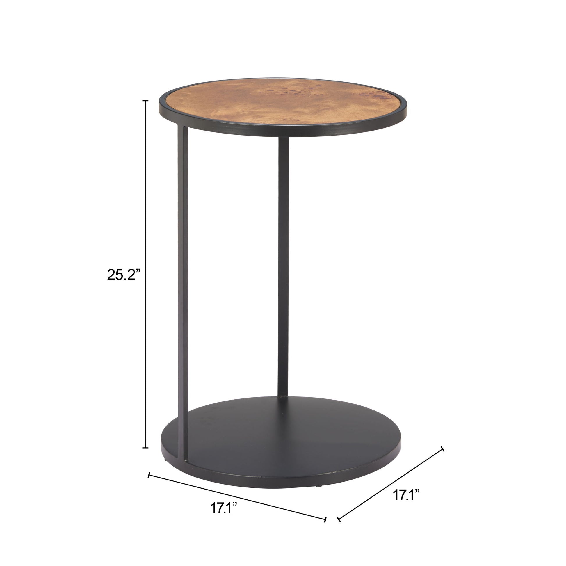 Showcasing a sleek brown and black finish, the Nodo Side Table combines modern charm with durable burl veneer MDF and iron construction. Ideal for hospitality use, it creates a refined look in any space.