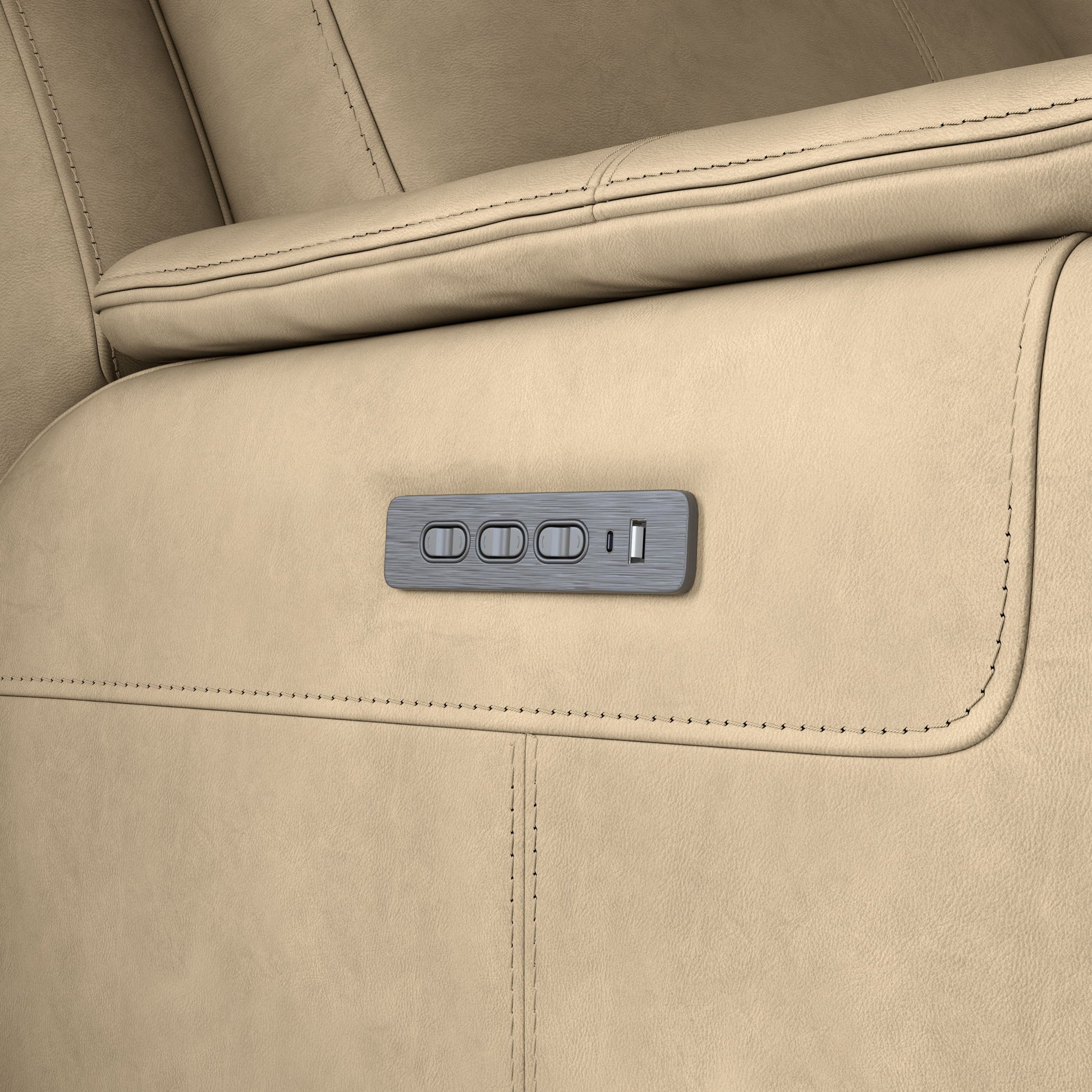 Ergonomic support meets elevated aesthetics with the Odell leather power reclining loveseat with console. Featuring clean lines, thin pad-over arms and high divided backs, this loveseat’s modern silhouette serves as an attractive complement to any living space. Triple power functionality allows for independent adjustment of both headrests, lumbar supports and recline for customized relaxation, while Zero Gravity technology provides a feeling of weightlessness and reduces pressure on the body. Use the convenient built-in USB ports to easily charge your mobile devices and the storage console to keep beverages and remotes within easy reach. With Flexsteel's patented Blue Steel Spring™ at the heart of each seat, and high-quality, light tan, top-grain leather, the Odell power reclining loveseat brings refined beauty and durability to your home.