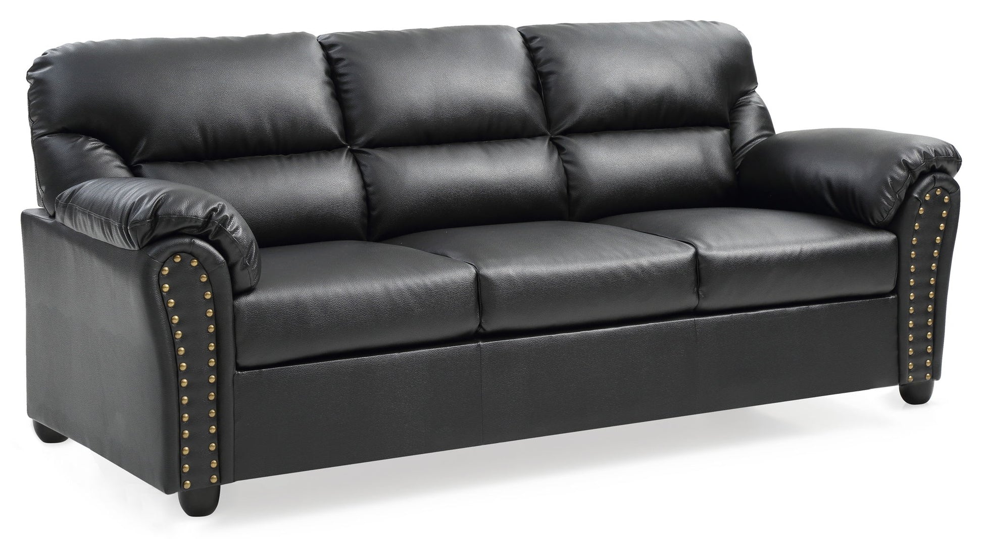This Black sofa brings a modern edge alongside functional design, striking a balance that enhances any contemporary living room. Its streamlined profile makes a bold statement, while the generous seating area ensures comfort during family gatherings or entertaining friends. This chic piece is perfect for relaxing after a long day or enjoying movie nights with loved ones. Constructed from high-grade bonded leather with captivating nailhead accents, it introduces a refined but striking touch to your space while ensuring durability. The excellent craftsmanship is evident in the carefully stitched seams, which not only enhance visual appeal but also signify attention to detail. The removable back feature offers added versatility for different seating arrangements. Measuring 36 inches in height, 82 inches in width, and 34 inches in depth, this sofa fits seamlessly within a variety of room layouts, enriching the overall ambiance. Its expansive seating area invites relaxation and social interaction, while practical features suit a busy lifestyle with ease of care in mind.