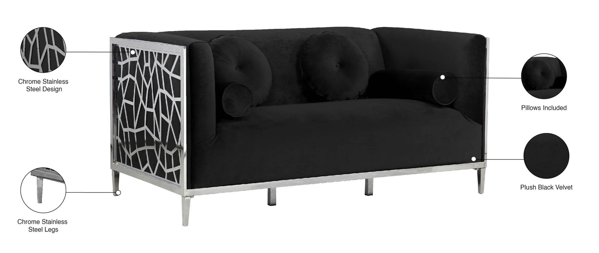 Catch the eyes of all who step foot in your home with this bold Opal velvet loveseat. Its stainless steel patterned design creates a contemporary flair against its plush, velvet upholstery, creating a home accent piece that is both comfy and stylish. Its roomy design offers ample room to kick back and relax after a long day, while its stocky shape adds a daring touch to your decor.