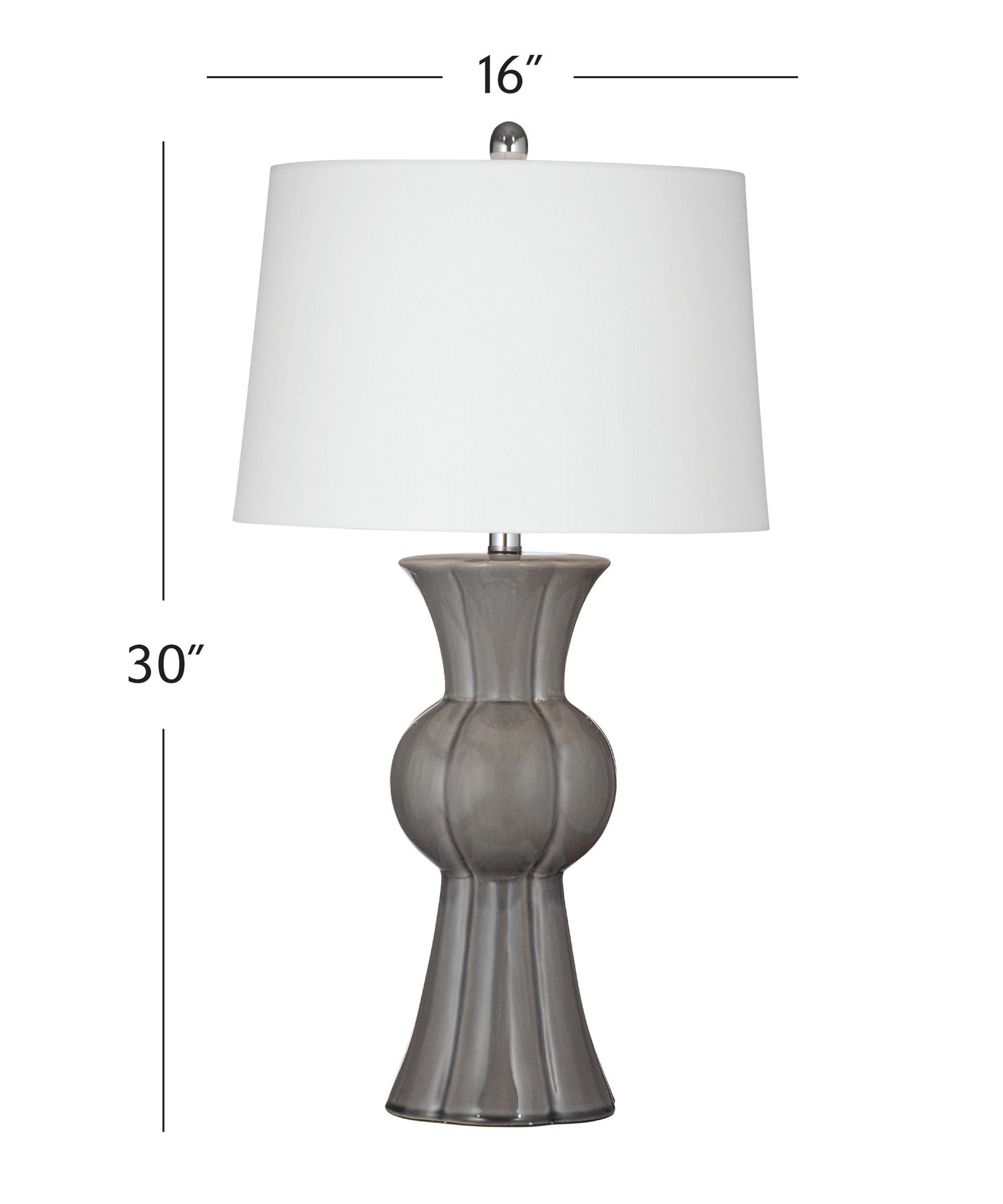 The Orillia Table Lamp features a grey ceramic base that adds a subtle touch of sophistication to any space. The white tapered drum-style shade softens the light, creating a warm and inviting ambiance. With its traditional design, this lamp effortlessly complements a variety of interior styles, bringing both timeless appeal and functionality to your home. The Orillia Table Lamp is an excellent choice for adding classic charm and style to your decor.