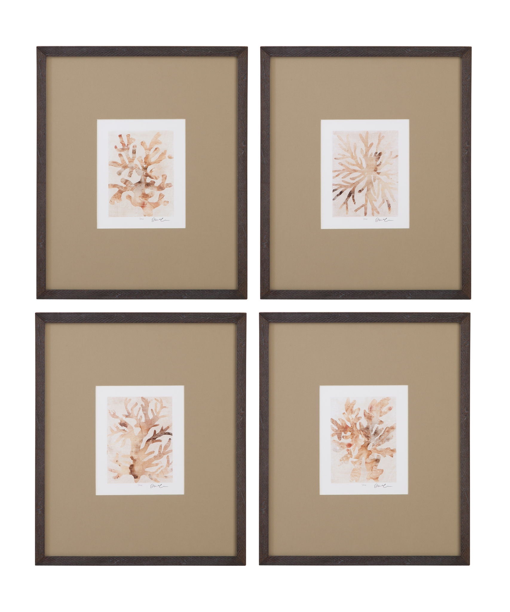 Parchment Coral II is a limited edition print signed and numbered by the artist and printed on fine art cotton rag paper. The print is framed in a 1" rustic black wash frame with a beige matboard.