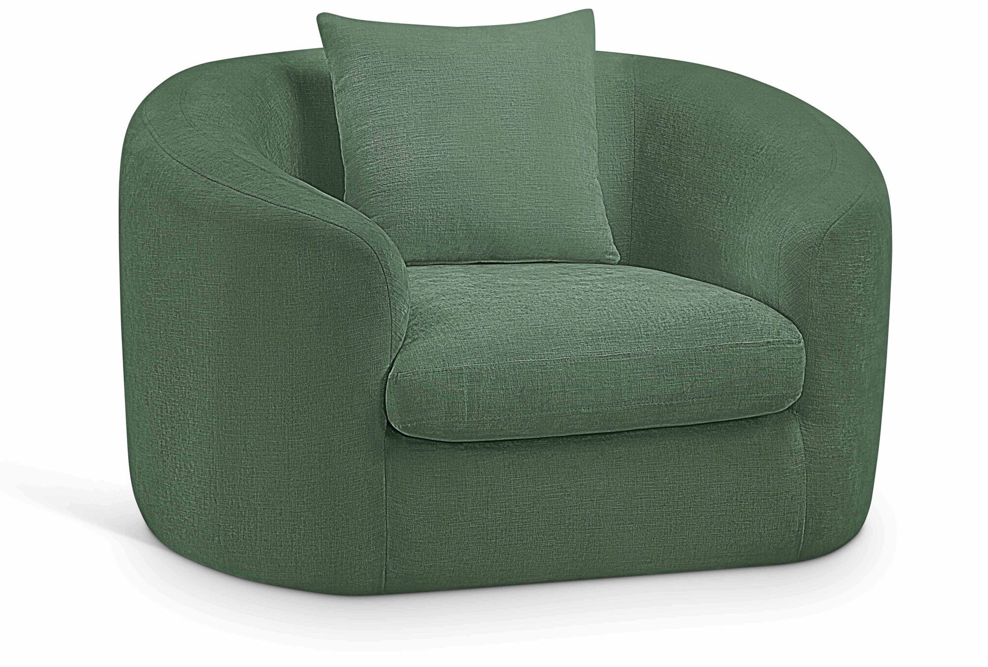 Discover the sophisticated charm of the Penelope chair, crafted in luxurious soft chenille fabric. This elegant piece features a solid wood inner frame for durability and a contemporary design that elevates any space. Included pillows enhance its comfort and style, making it an ideal centerpiece for gatherings. Transform your home with the true embodiment of refined taste and timeless beauty.