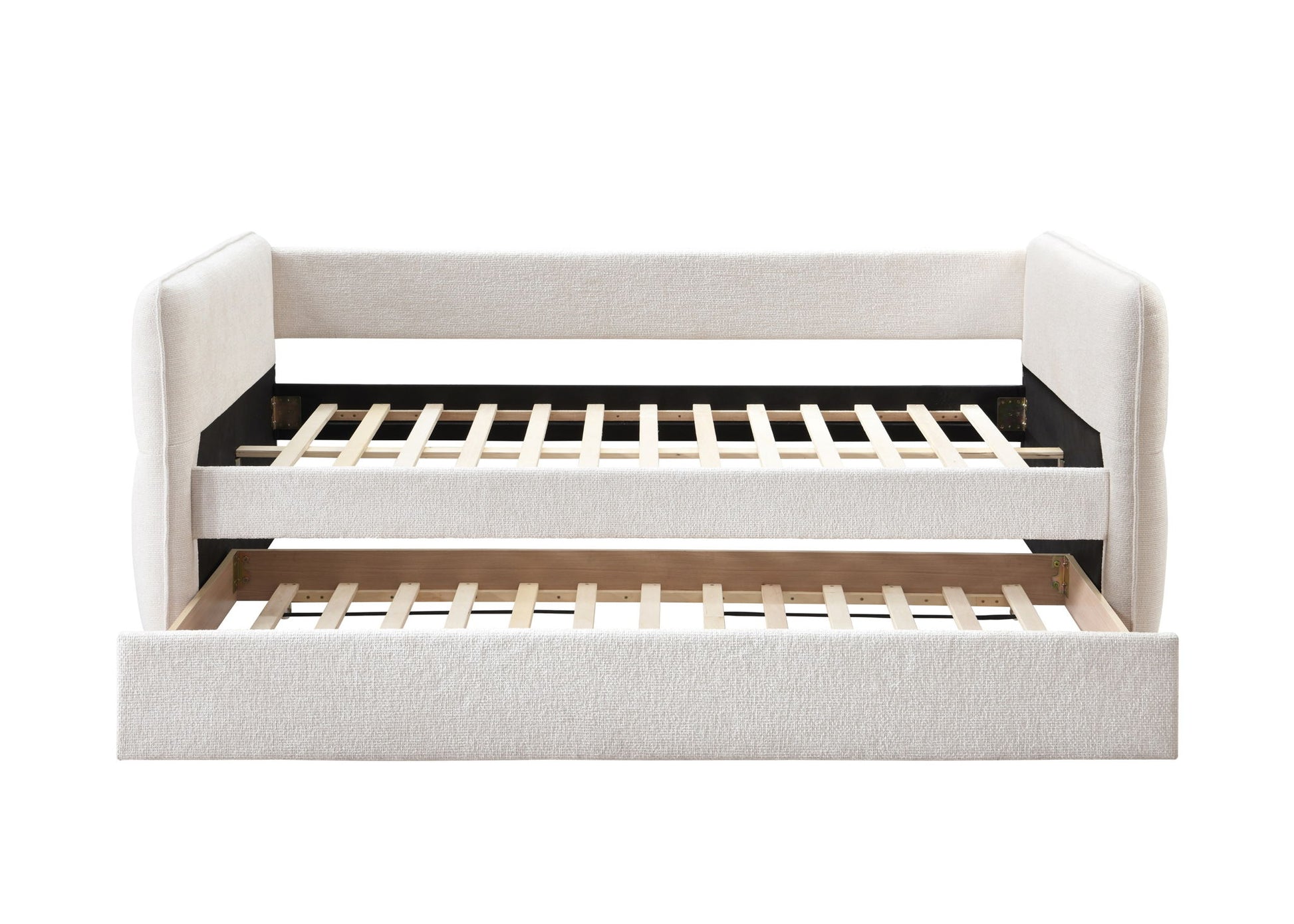 This stylish and multifunctional daybed is the epitome of modern versatility and chic design. Its clean lines and neutral-toned upholstery make it a seamless addition to any living space or home office. The daybed features an innovative pull-out trundle that effortlessly transitions the piece from a cozy lounge to a comfortable sleeping solution for guests.