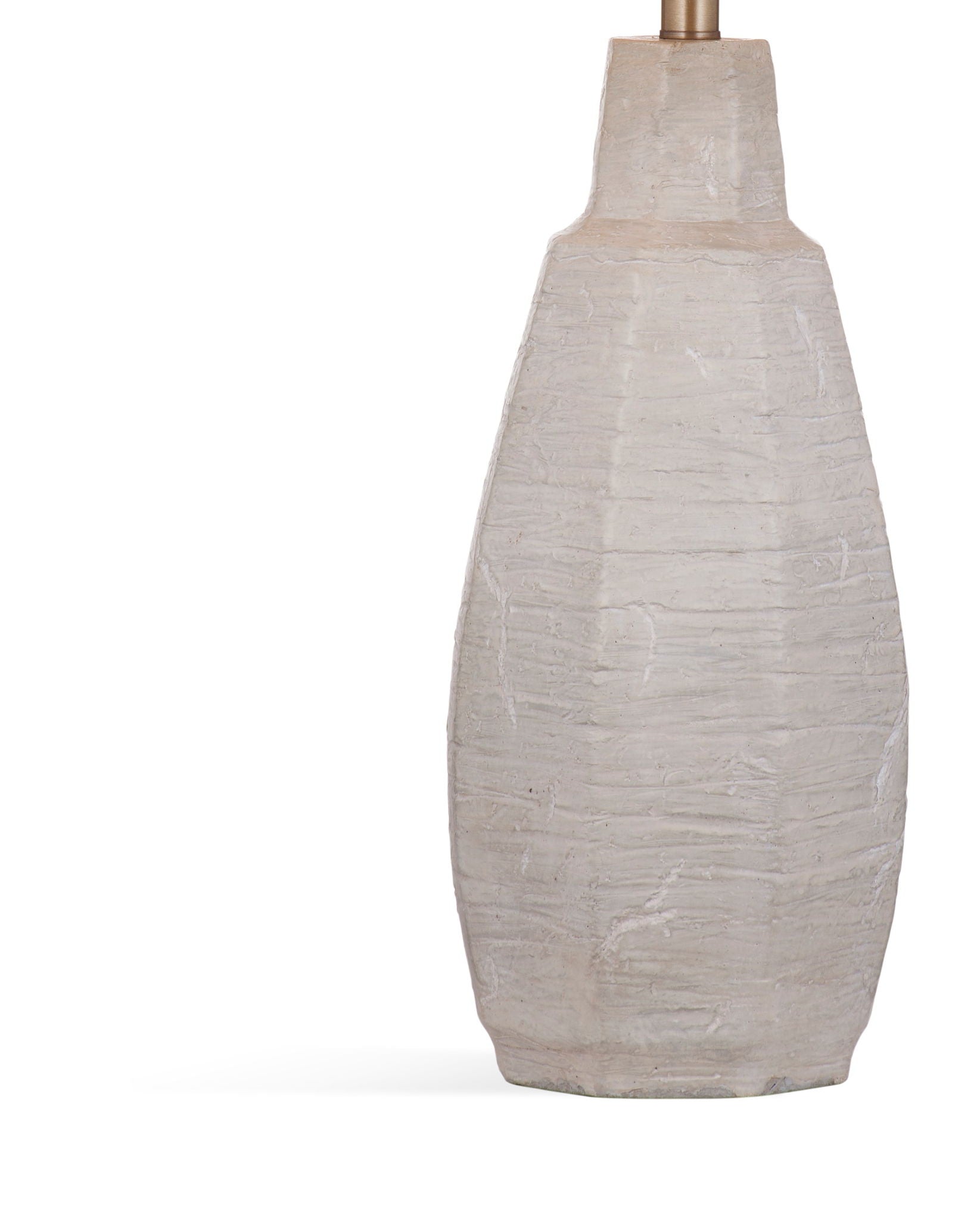The Plata Table Lamp is crafted of cement in a cement and white washed finish with a white linen tapered shade.