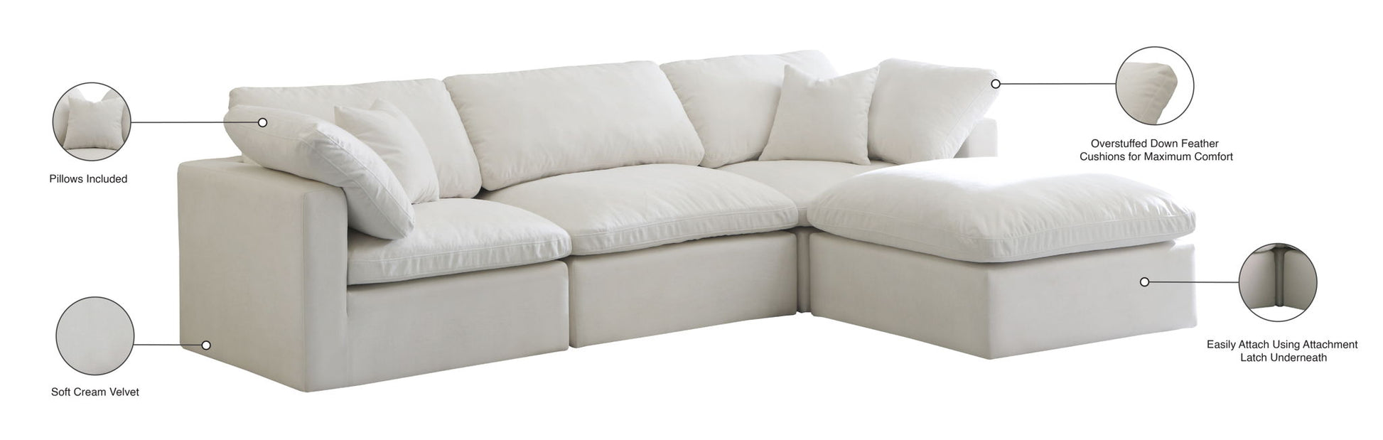 Plush - 4 Piece Modular Sectional With Chaise - Cream