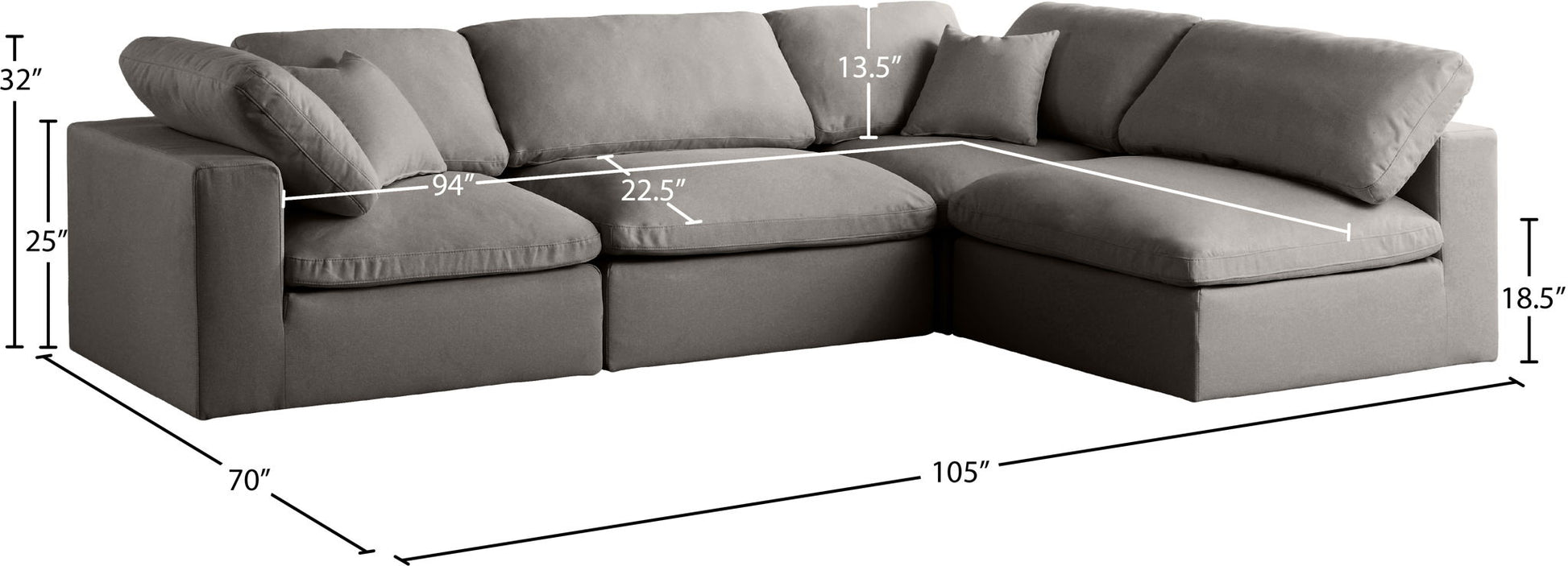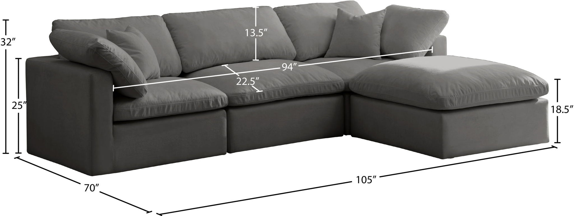 Plush - 4 Piece Modular Sectional With Chaise - Gray