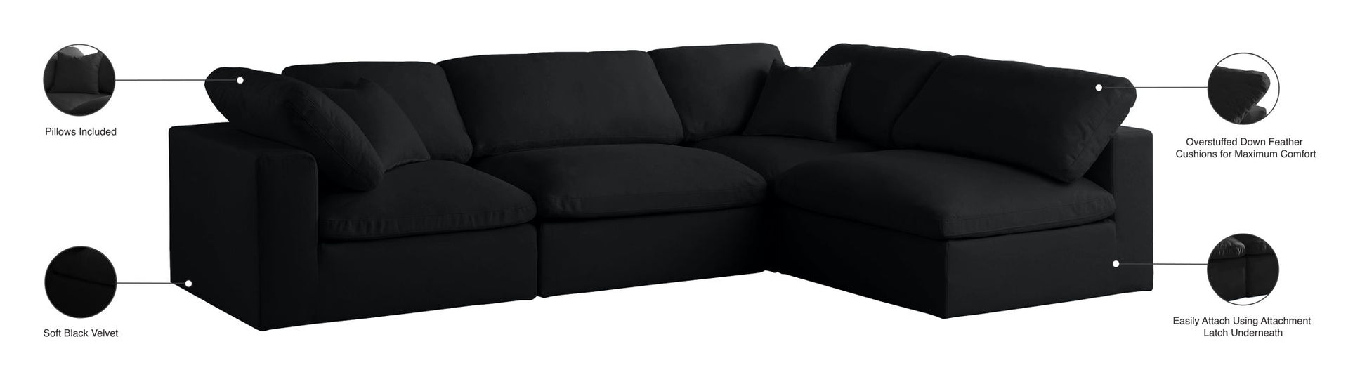 Plush - 4 Piece Modular Sectional With Chaise - Black
