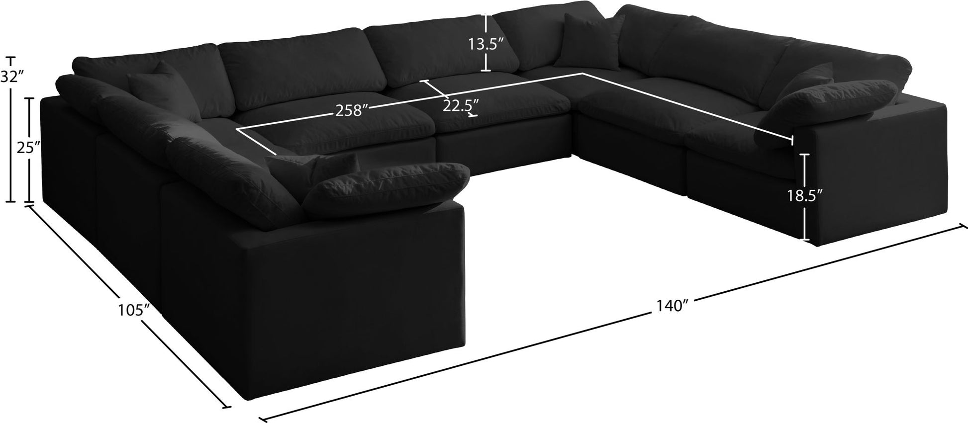 Plush - 8 Piece Modular Sectional - Black