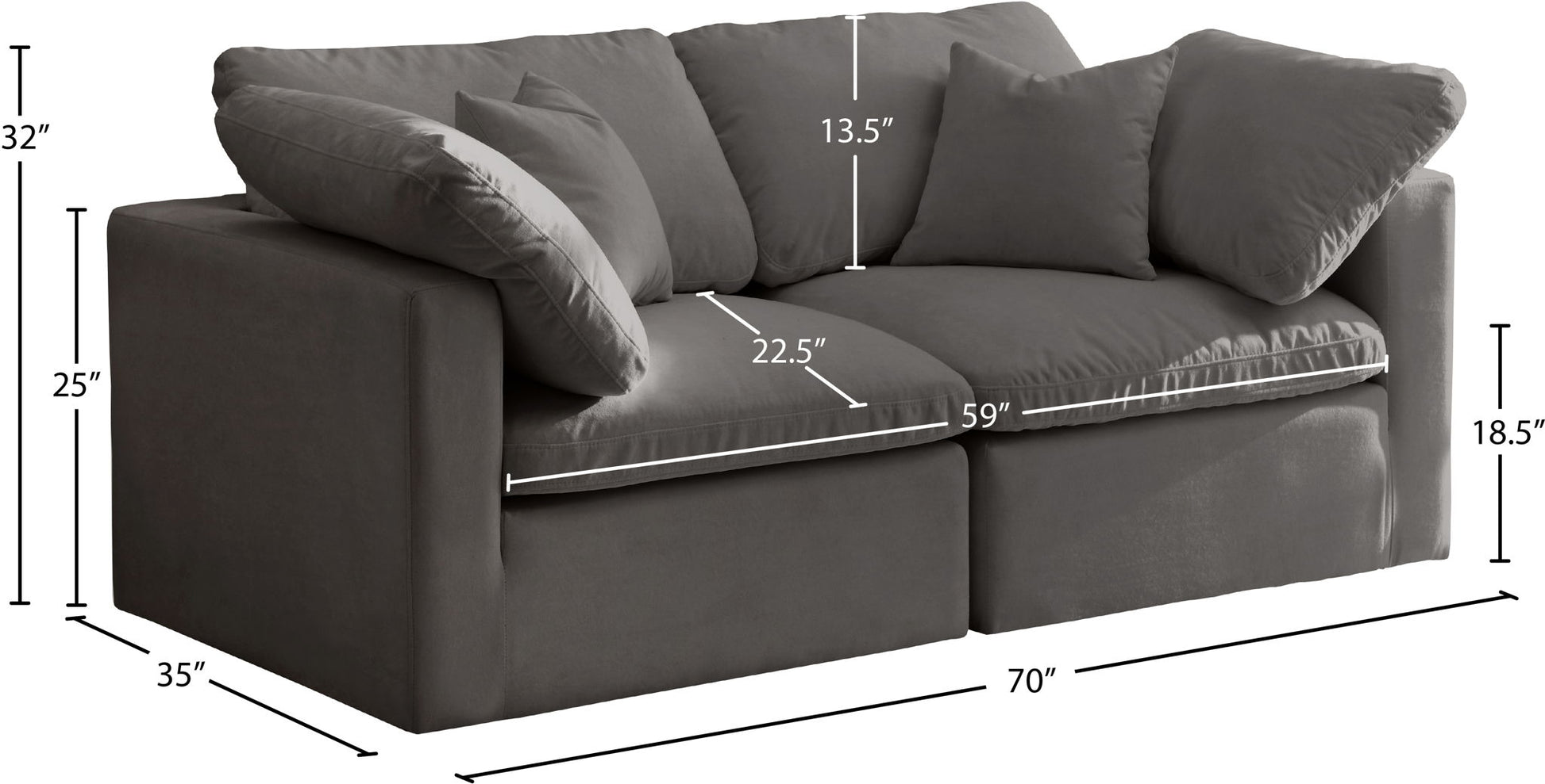 Plush - 2 Piece Modular Sofa - Gray