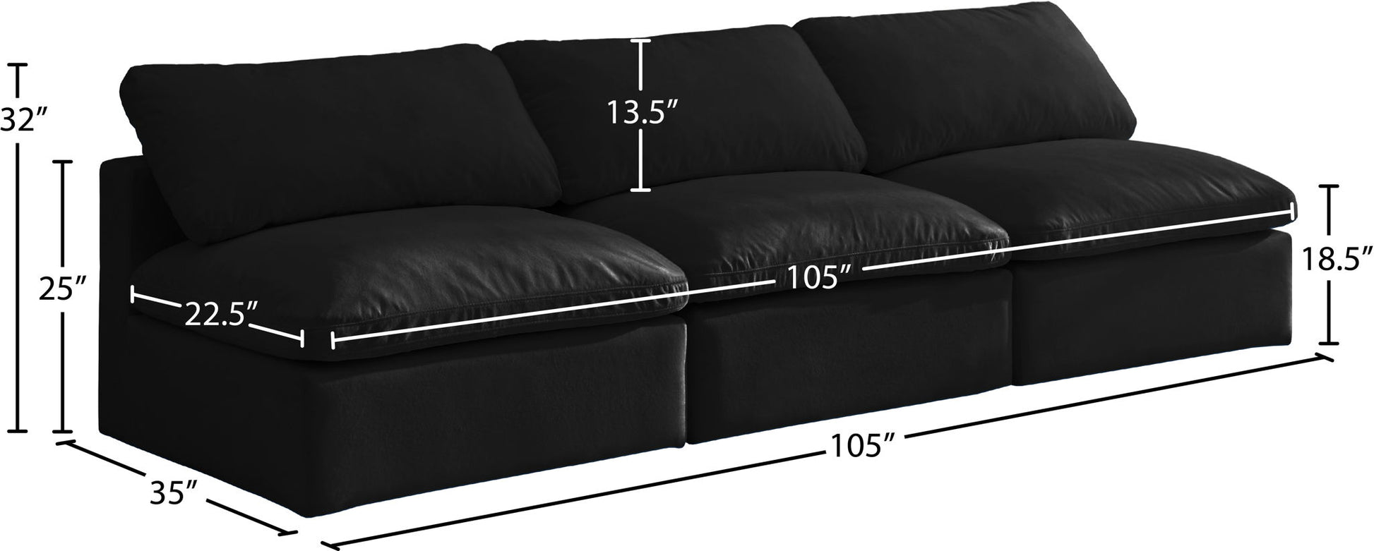 Plush - 3 Piece Modular Armless Sofa - Black