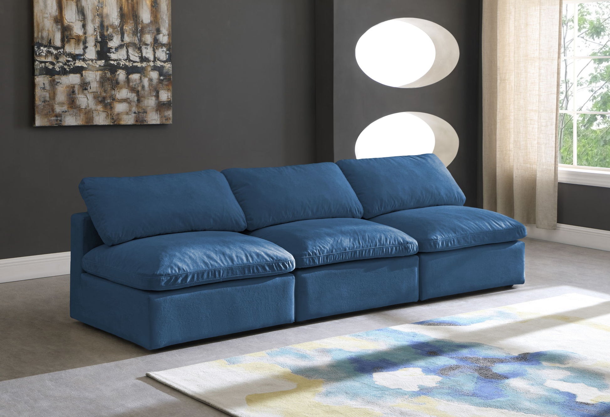 Plush - 3 Piece Modular Armless Sofa - Navy
