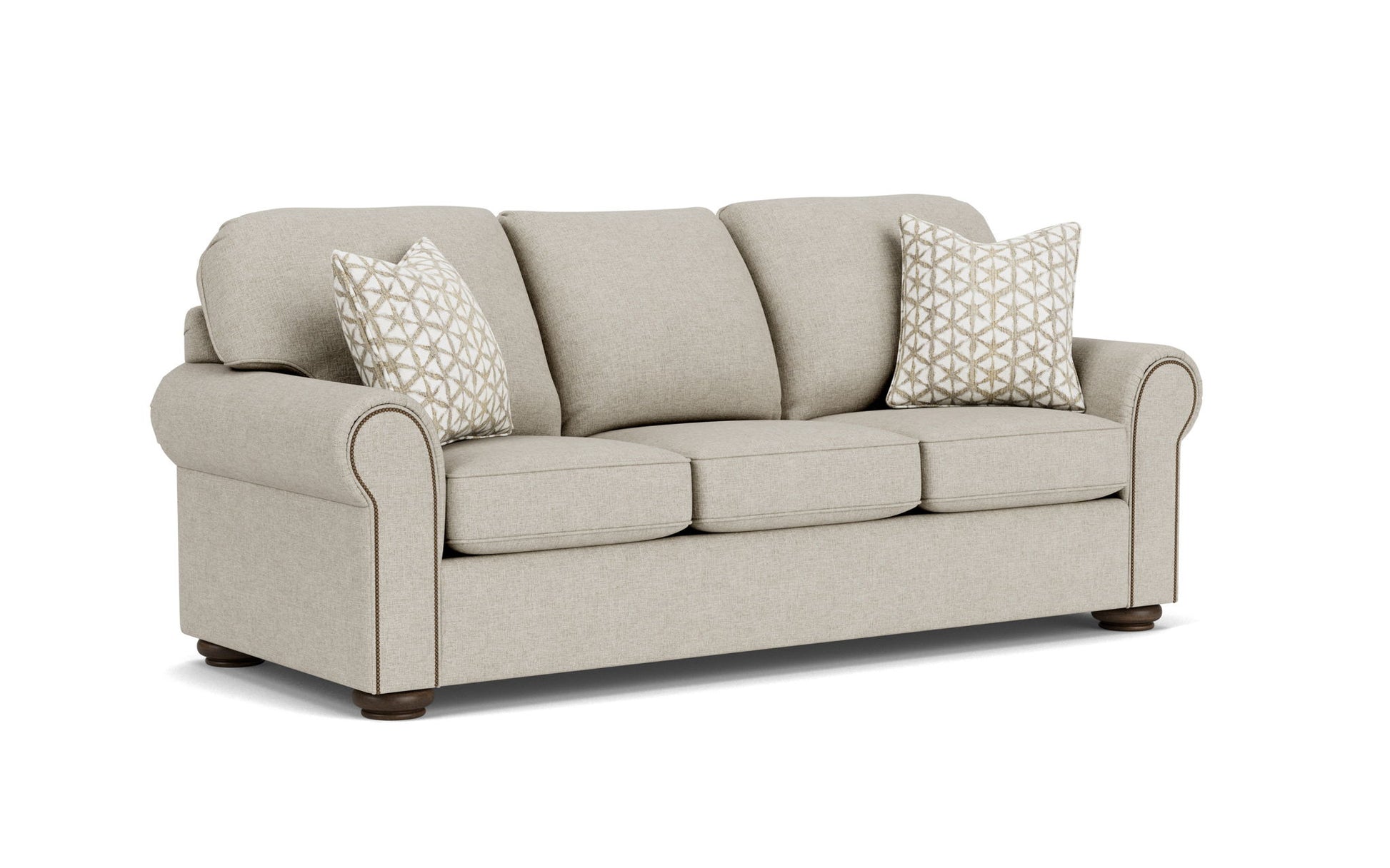 Inviting details on an attractive frame. Smooth edges, oversized rolled arms, and exposed round bun feet give Preston classic appeal as a living-area staple. This sofa features welt cording trim on the back and seat cushions with nailhead trim for an elegant touch. Backed by lifetime guarantees, the style and comfort of Preston will be enjoyed for years to come.