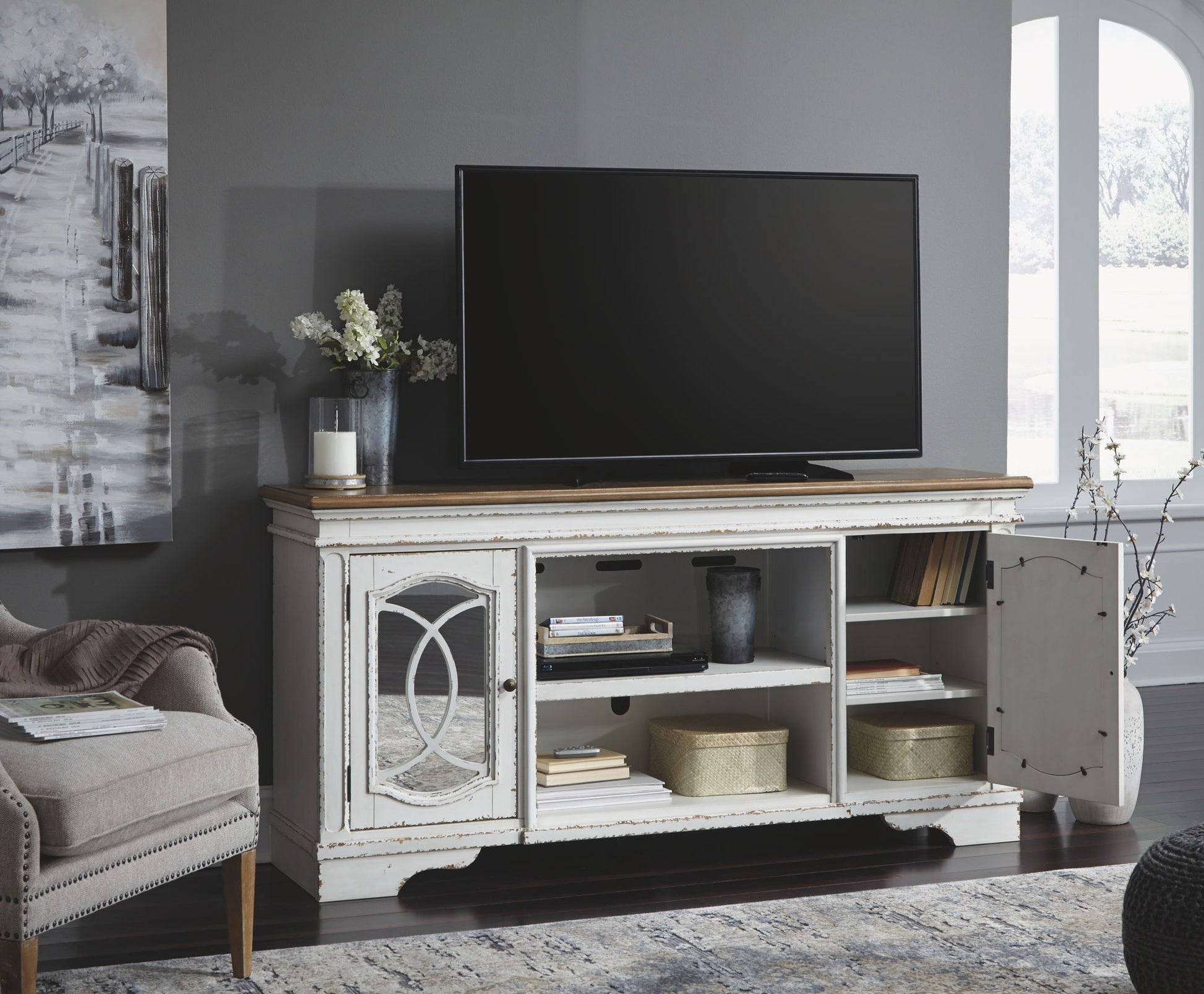 Realyn - XL TV Stand w/Fireplace Option - Chipped White