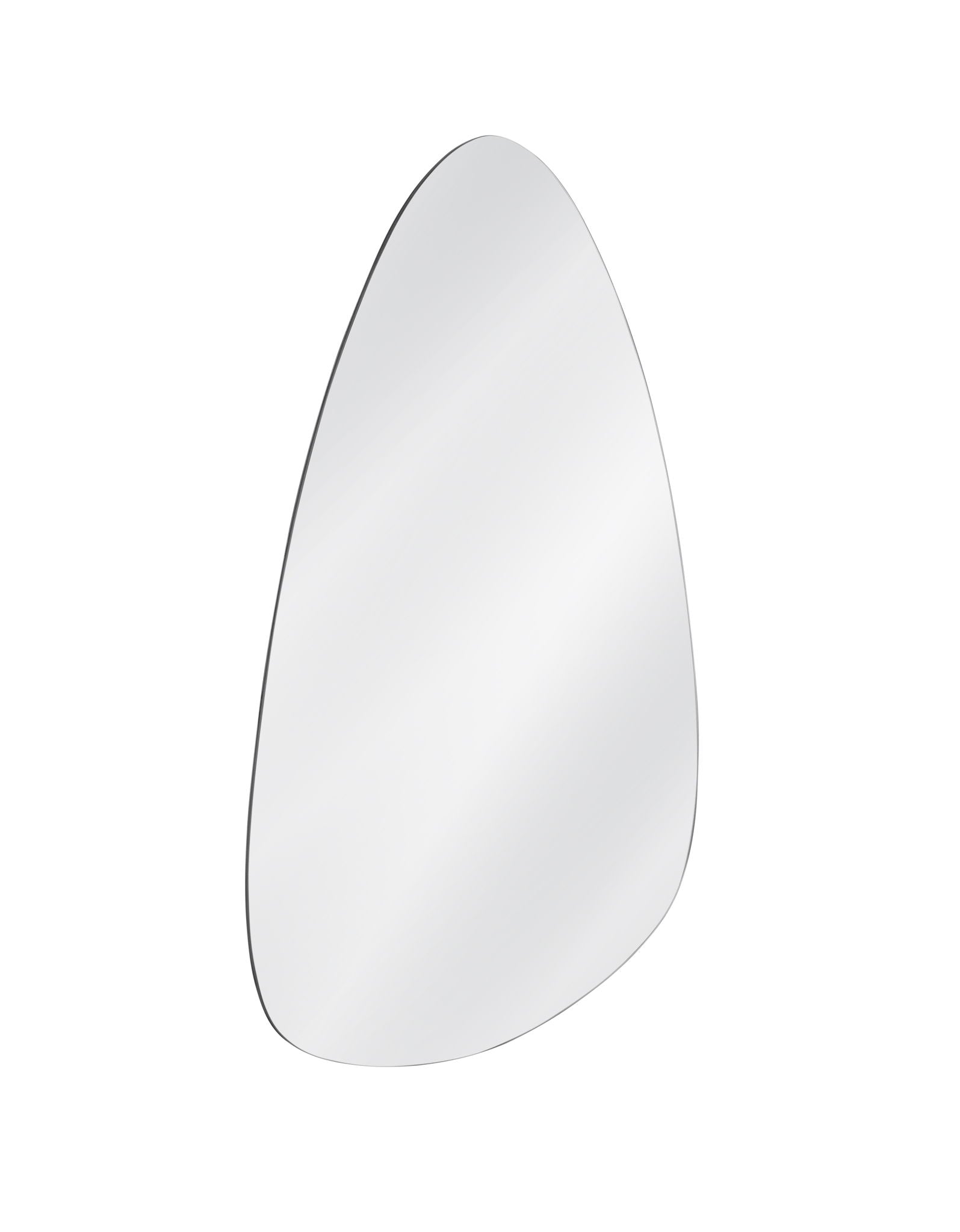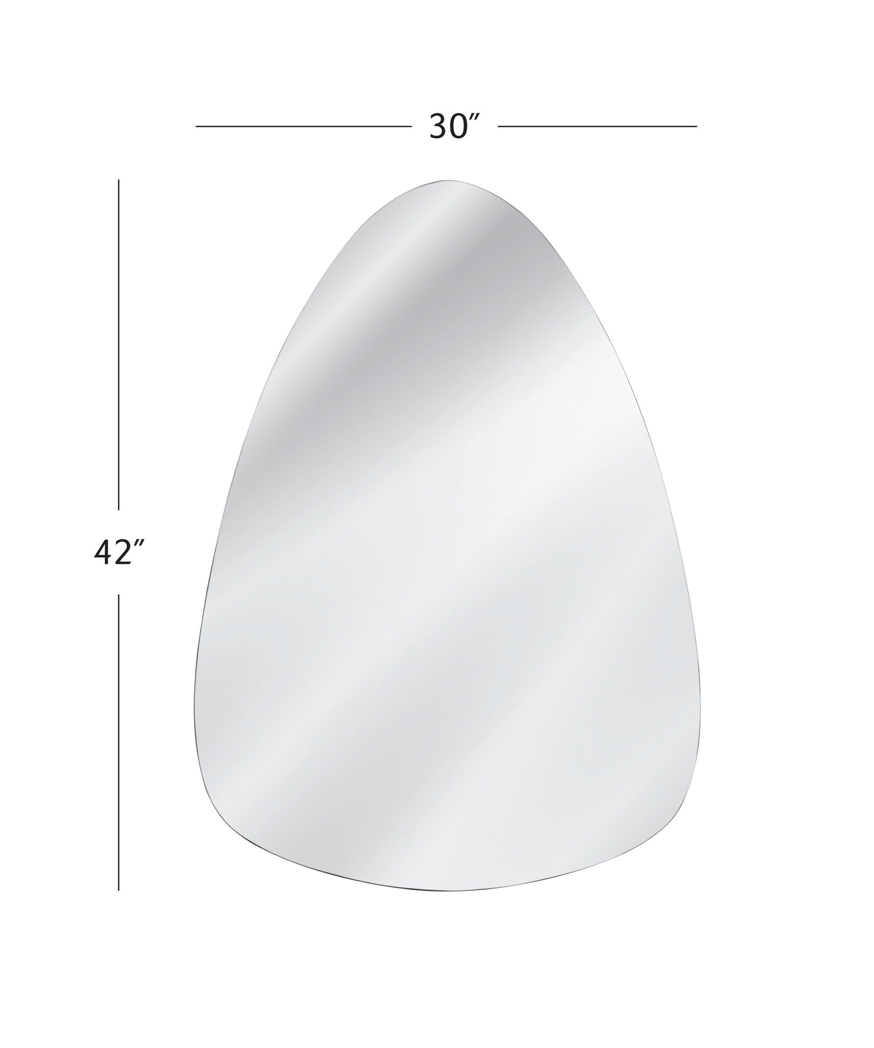 - The Reinhold Wall Mirror showcases a sleek teardrop shape framed in a thin silver border, highlighting its unique silhouette.