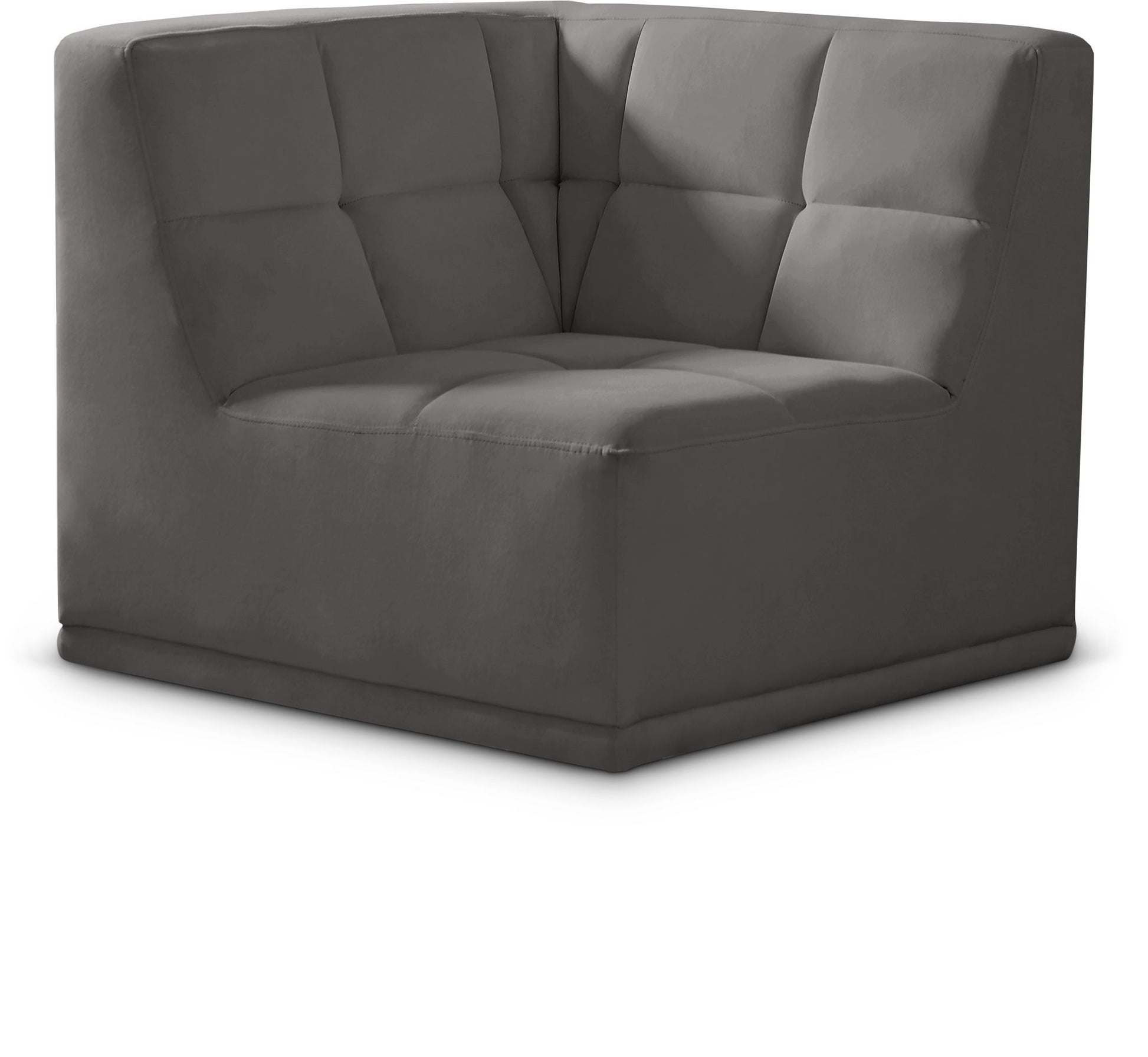 Bolster a contemporary vibe in your living room with this Relax velvet corner chair. Soft black velvet upholstery offers delicate comfort, making this chair cozy for anyone who sits in it. Biscuit tufting gives this chair texture and a modern style, adding extra comfort and elegance to your living space. It s modular design allows you to create infinite configurations, making it a versatile piece to add to your home. A latch underneath the chair makes it easy to attach to other pieces.