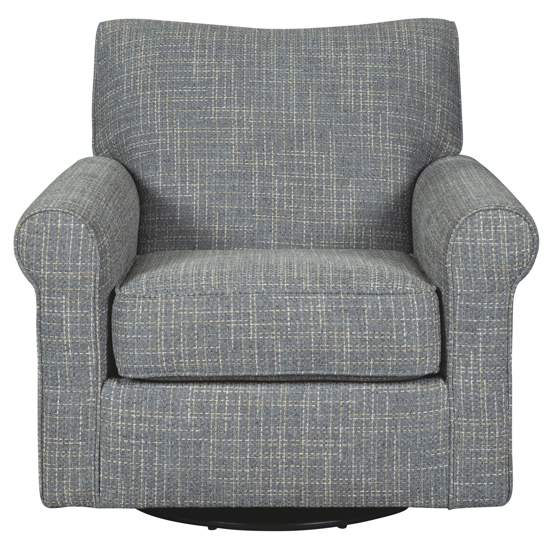 Sporting a tantalizing tweed weave fabric in such a soothing blue hue, this swivel glider accent chair gives the classic roll arm chair a modern twist. Smooth, 360-degree swivel caters to your comfort—and your viewing pleasure. Gentle glider feature is designed to rock your cares away.
