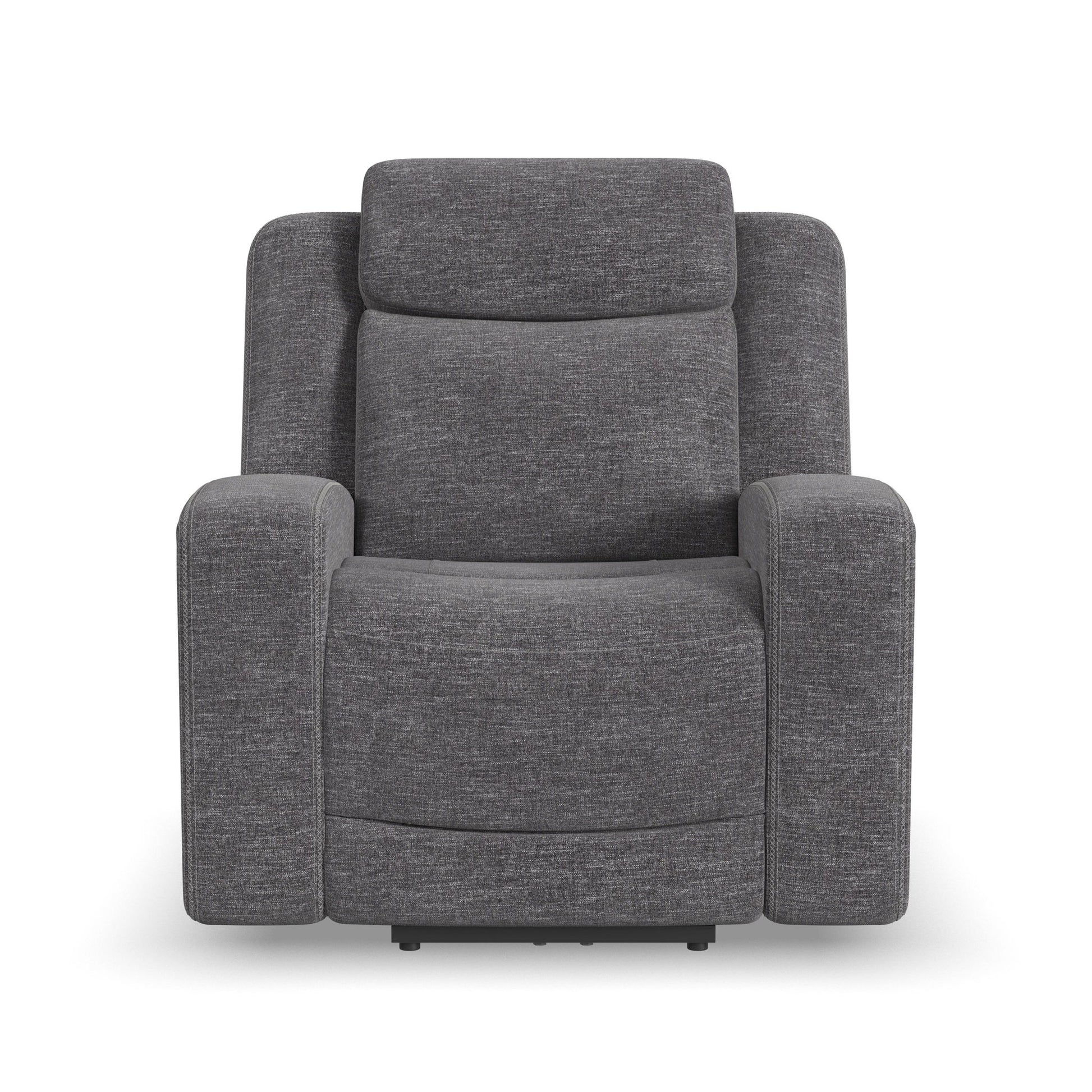 Lasting comfort is easily attainable with the Ridge power recliner with power headrest. Featuring Zero Gravity recline, Ridge envelops you in relaxing support with a contoured bucket seat, waterfall chaise and high-divide back. Wide track arms and cross-stitching detail add to its timeless, casual appeal. Upholstered in a stain-resistant, granite gray performance fabric, the Ridge recliner offers affordable style and practicality to support active families.