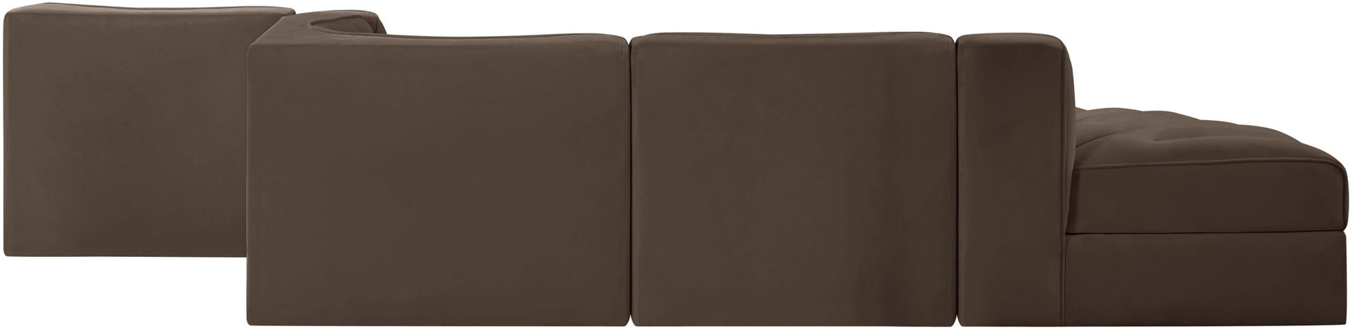 Rummi - Rounded Velvet Performance Fabric Upholstered 5 Piece Modular Sectional - Brown