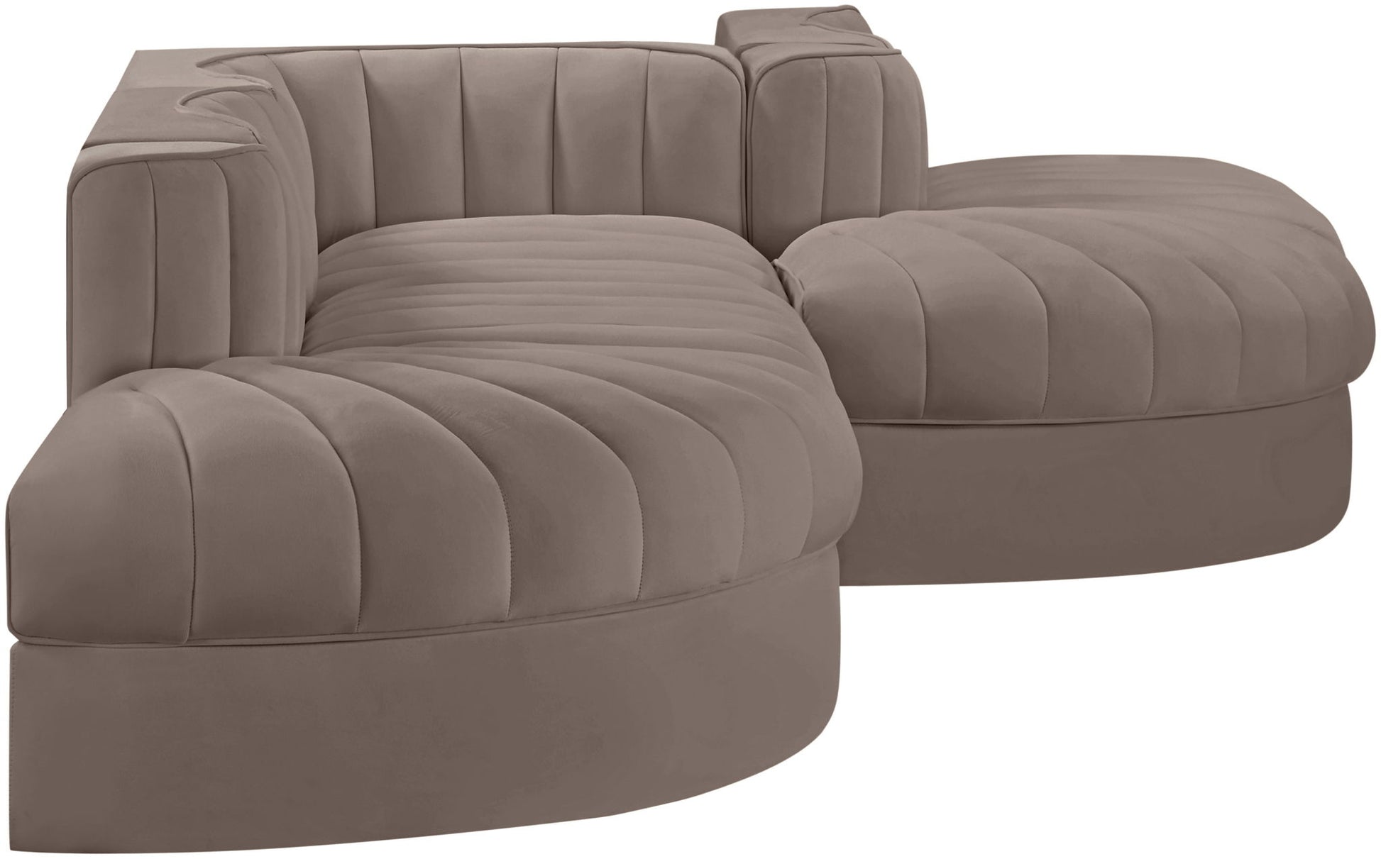Rummi - Rounded Velvet Performance Fabric Upholstered 5 Piece Modular Sectional - Taupe
