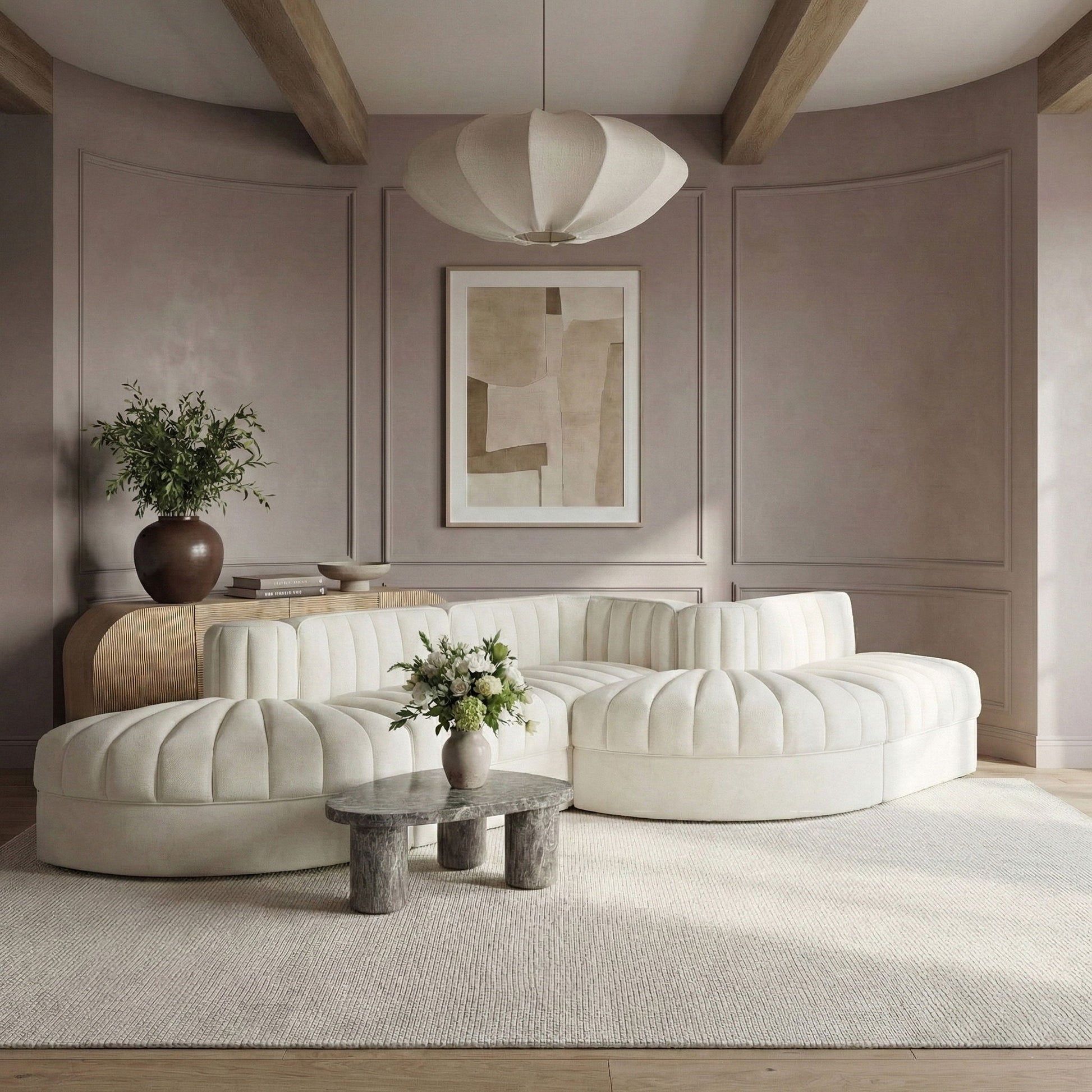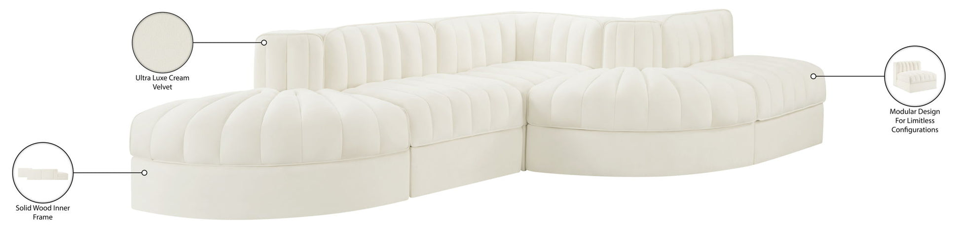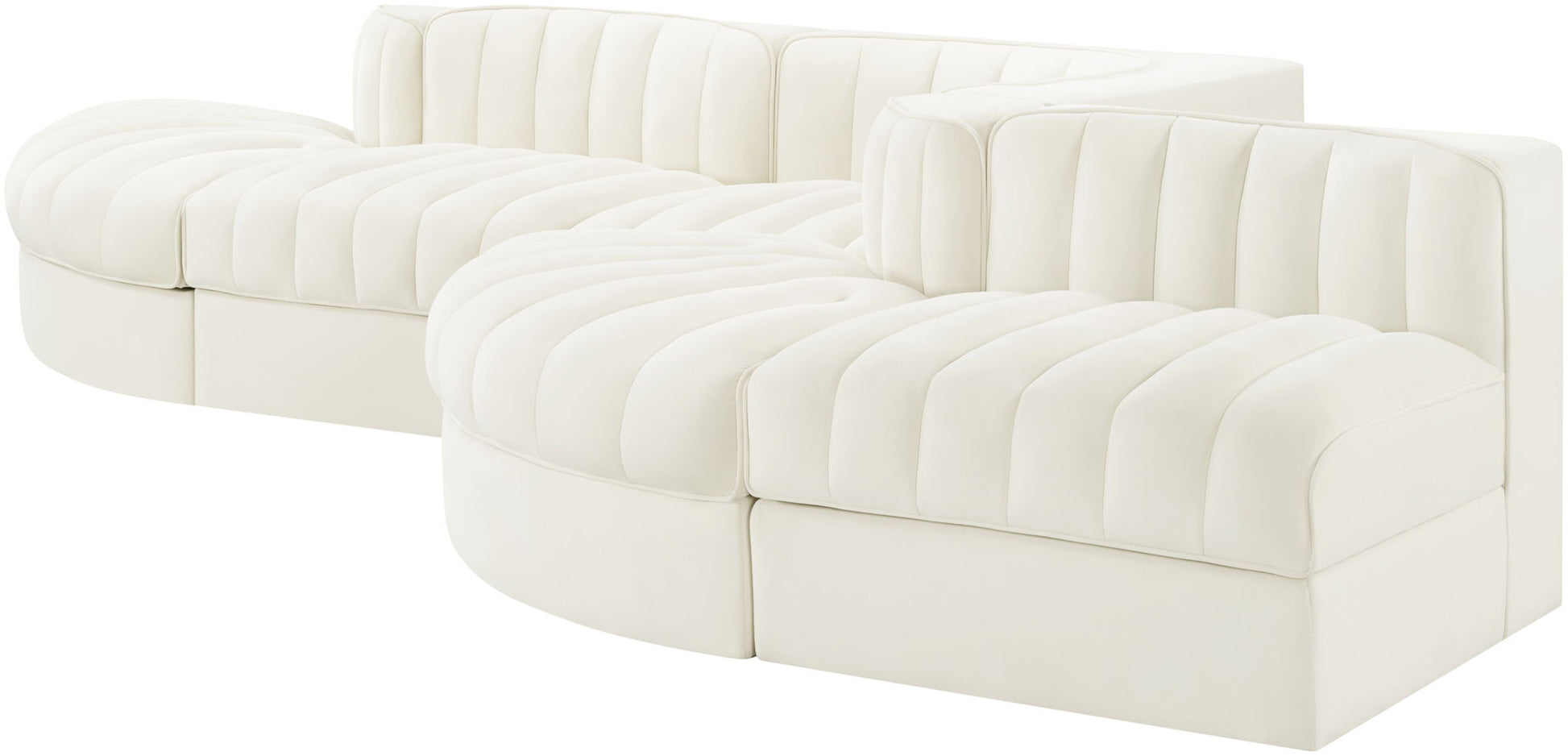 Rummi - Rounded Velvet Performance Fabric Upholstered 5 Piece Modular Sectional - Cream