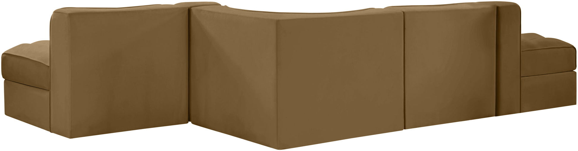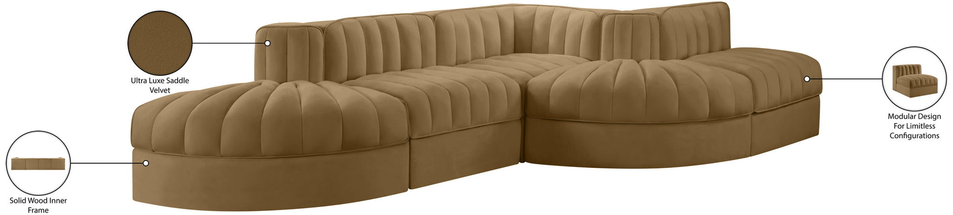 Rummi - Rounded Velvet Performance Fabric Upholstered 5 Piece Modular Sectional - Saddle