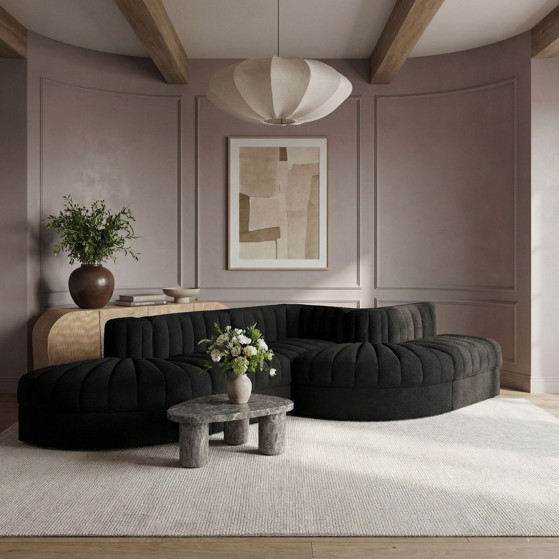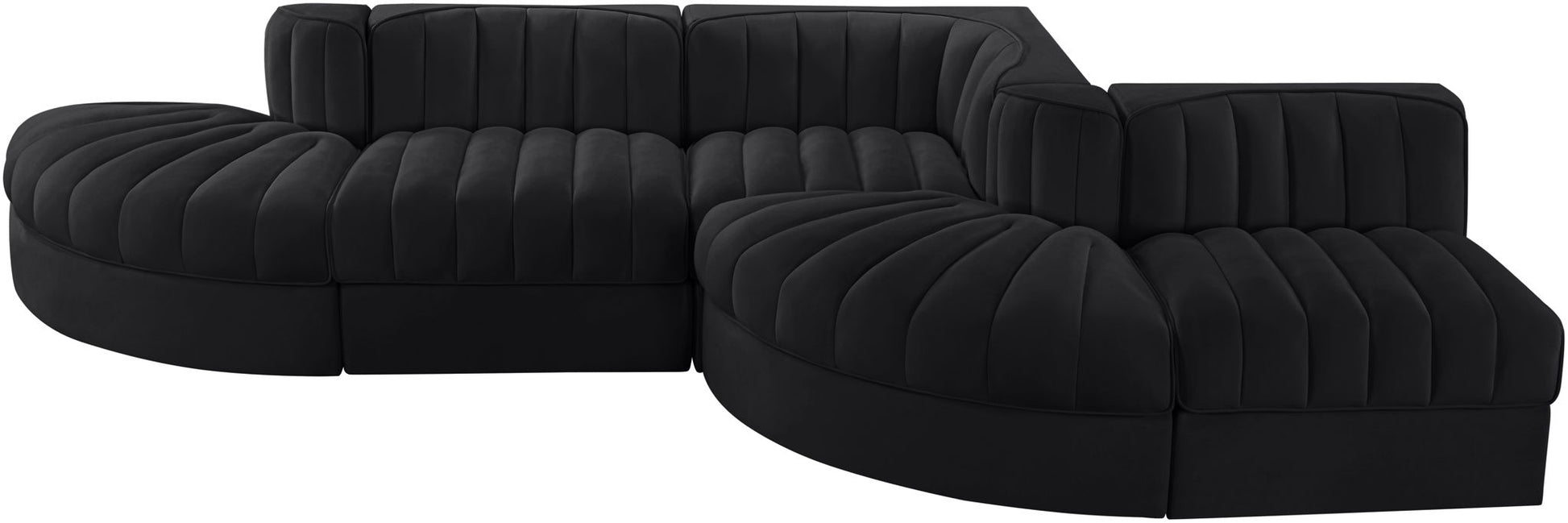 Rummi - Rounded Velvet Performance Fabric Upholstered 5 Piece Modular Sectional - Black