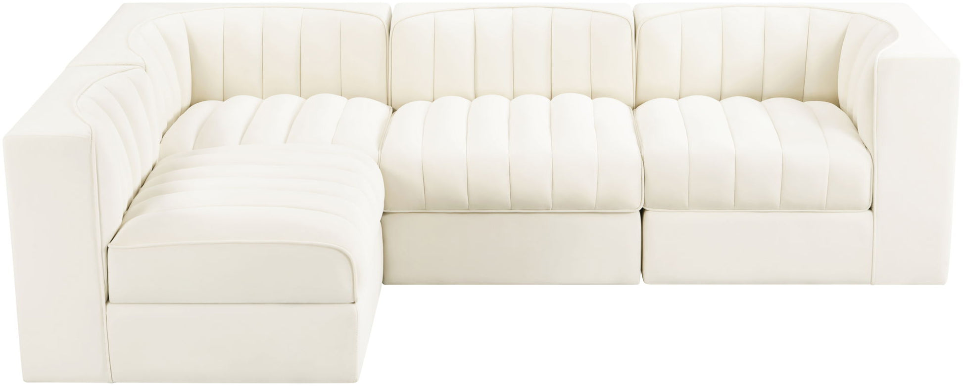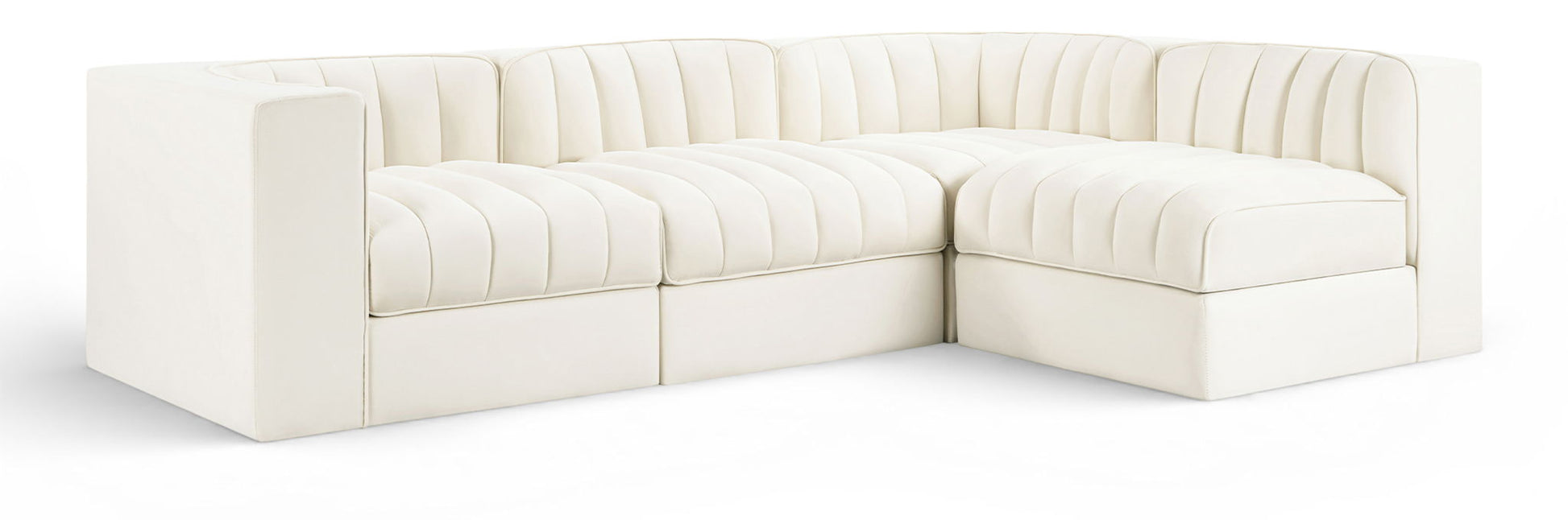 Rummi - Velvet Performance Fabric Upholstered 4 Piece Modular Sectional - Cream