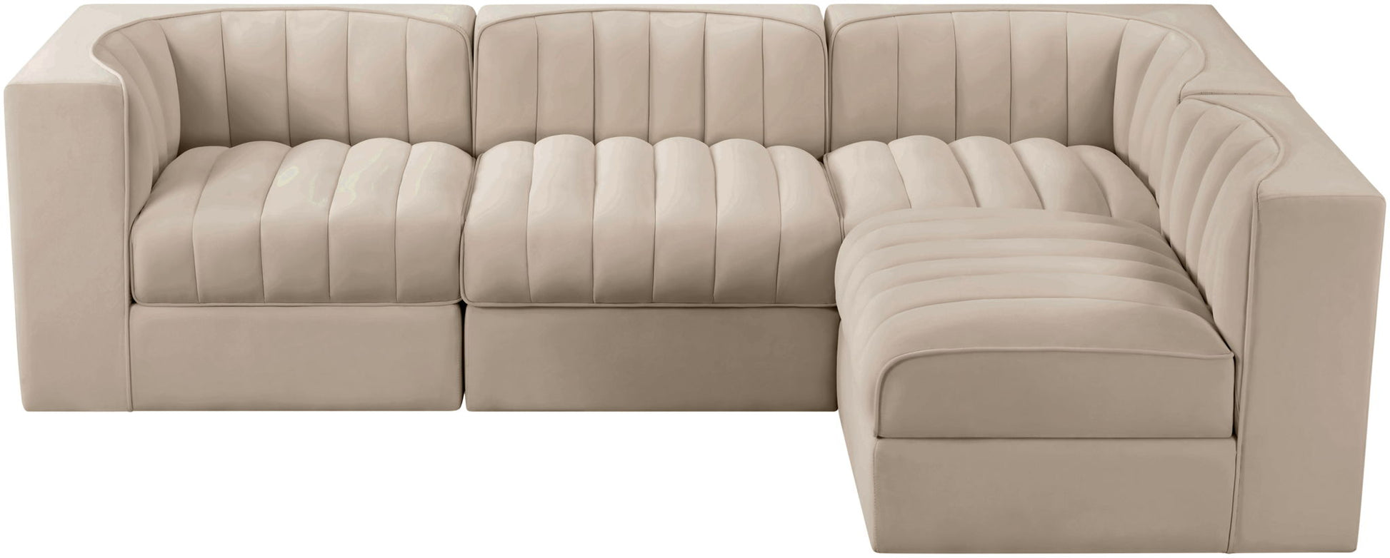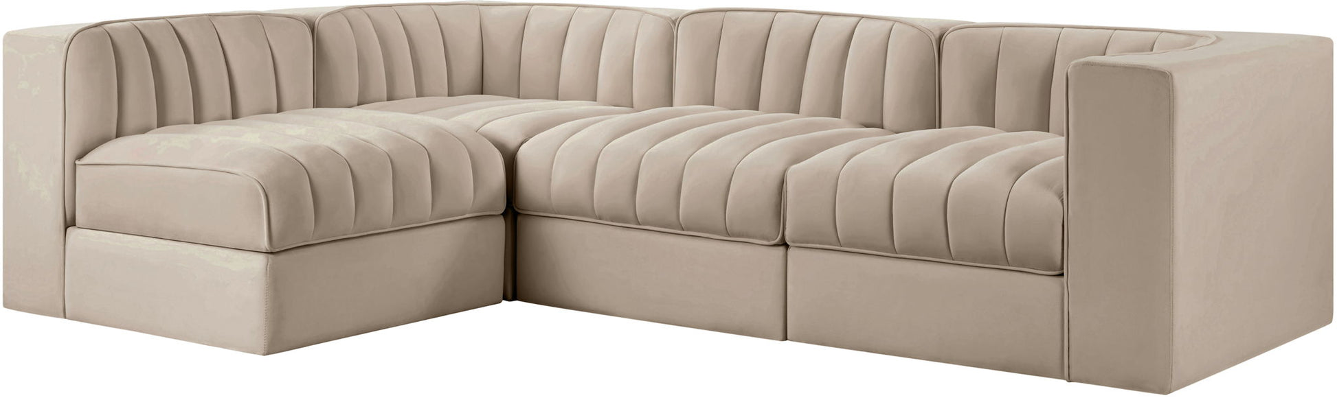 Rummi - Velvet Performance Fabric Upholstered 4 Piece Modular Sectional - Beige