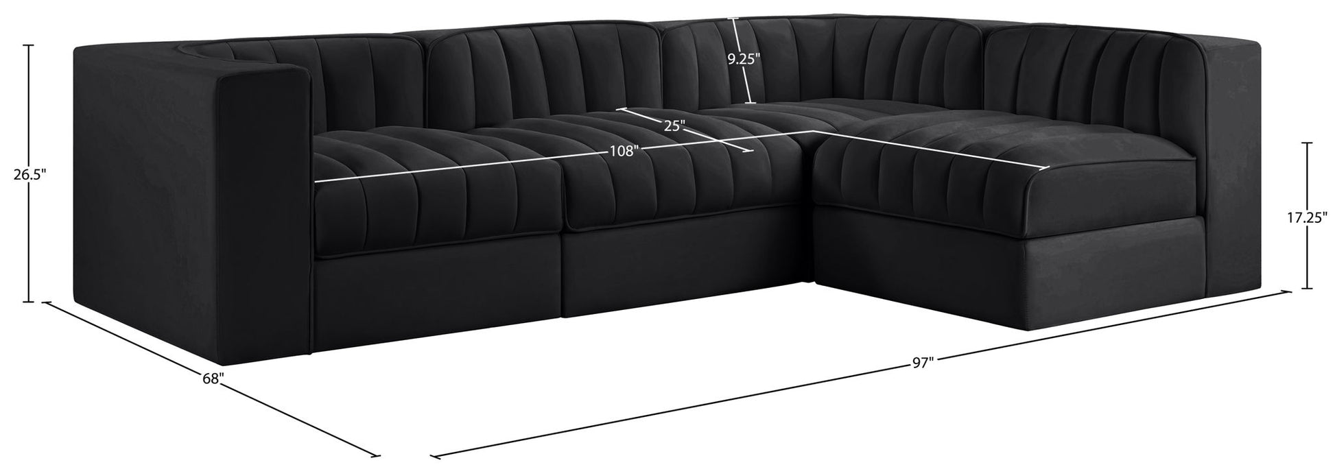 Rummi - Velvet Performance Fabric Upholstered 4 Piece Modular Sectional - Black