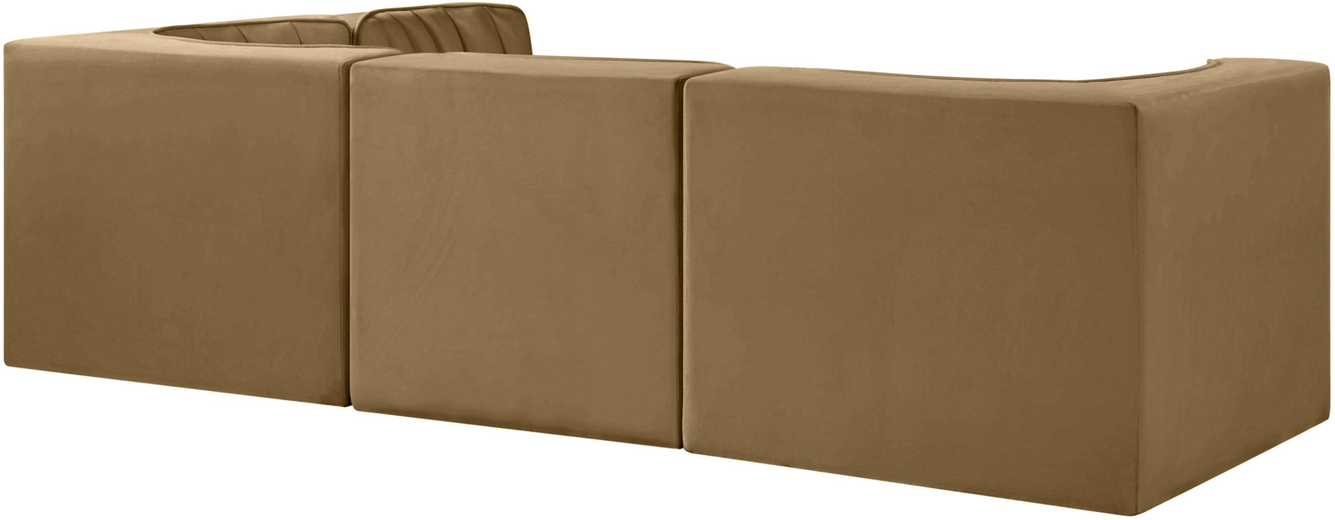 Rummi - Velvet Performance Fabric Upholstered 4 Piece Modular Sectional - Saddle