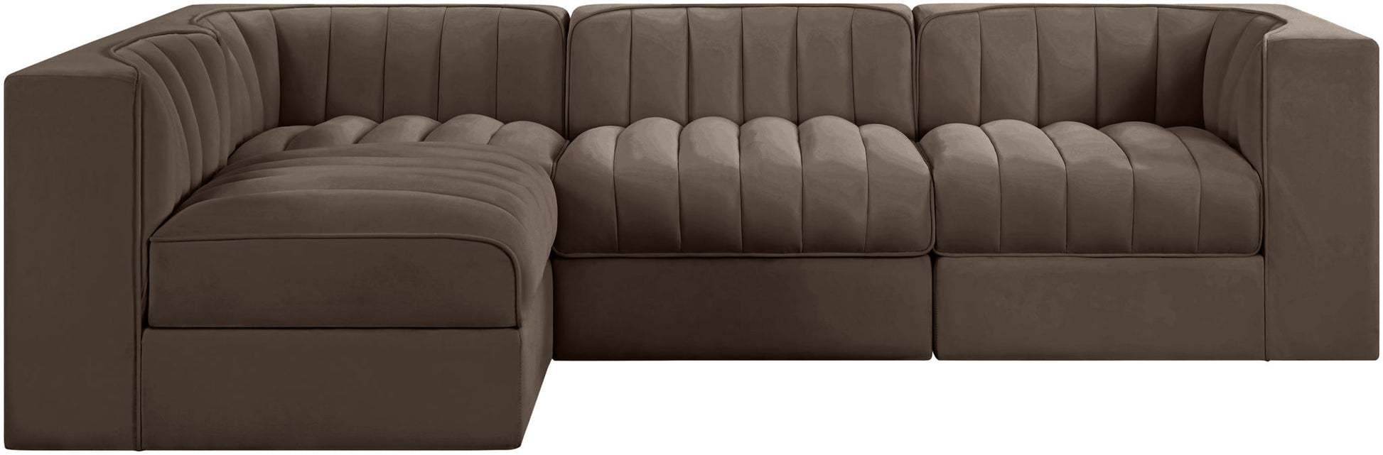 Rummi - Velvet Performance Fabric Upholstered 4 Piece Modular Sectional - Brown