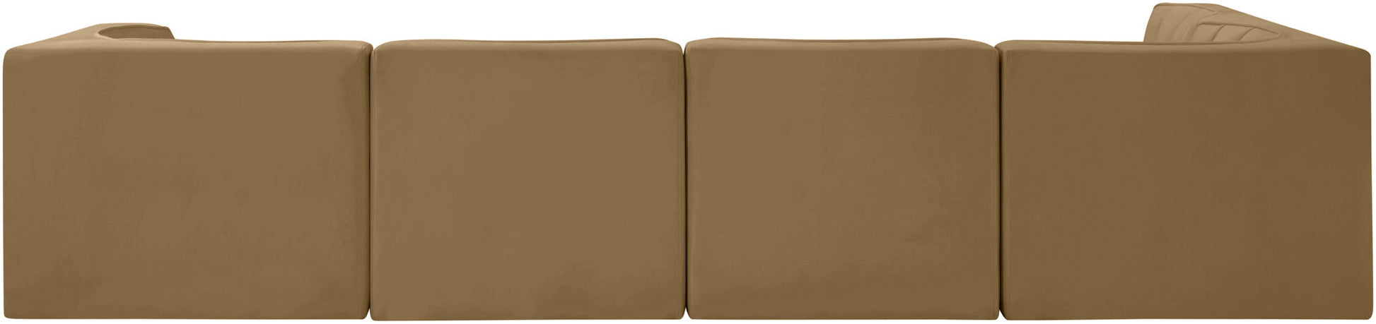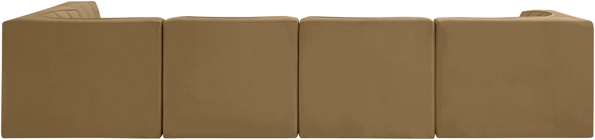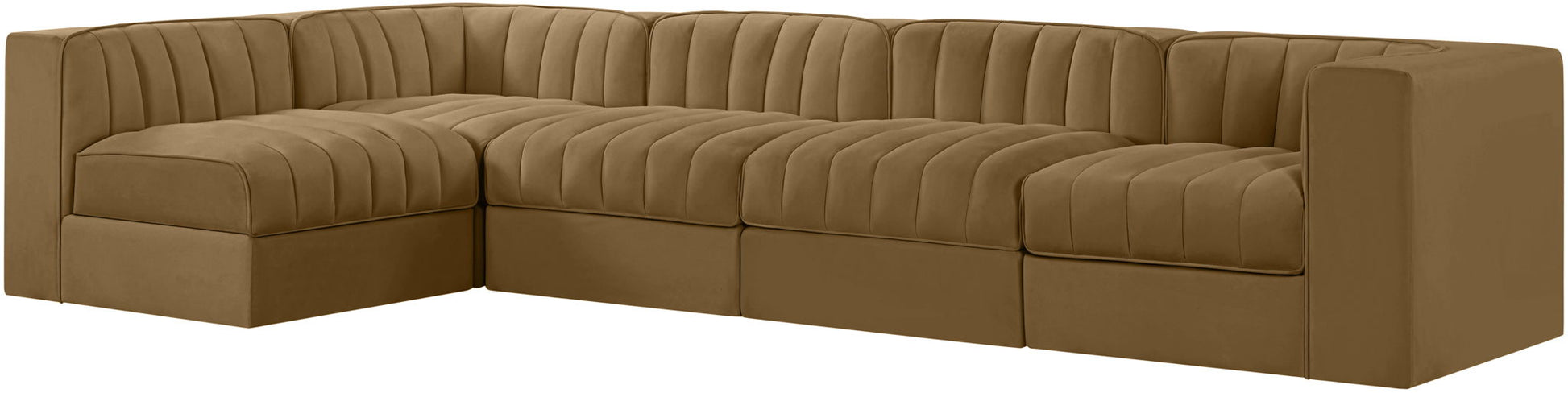 Rummi - Velvet Performance Fabric Upholstered 5 Piece Modular Sectional, L-Shaped (Right) - Saddle