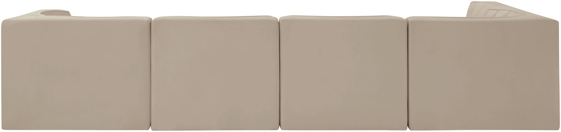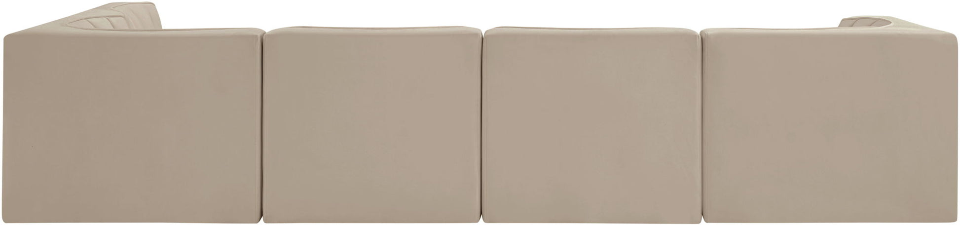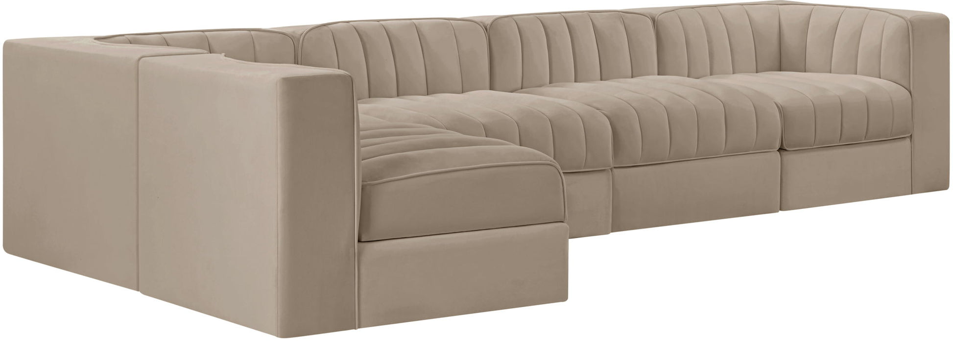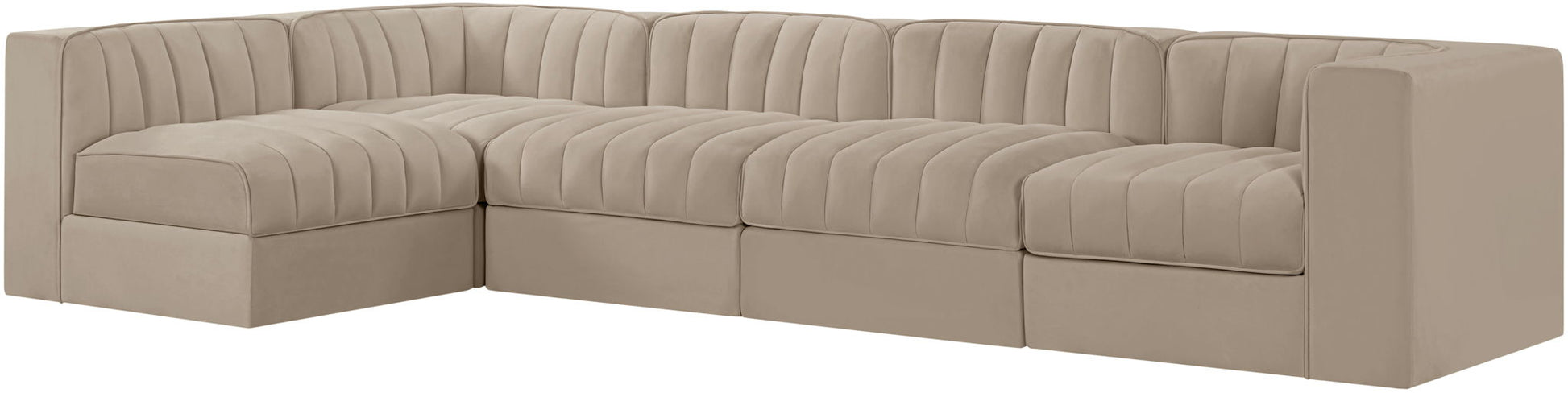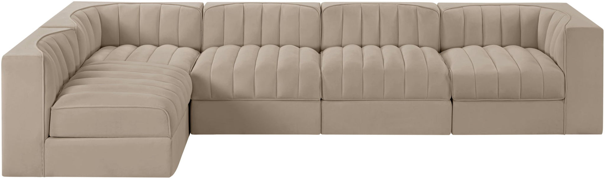 Rummi - Velvet Performance Fabric Upholstered 5 Piece Modular Sectional, L-Shaped (Right) - Beige