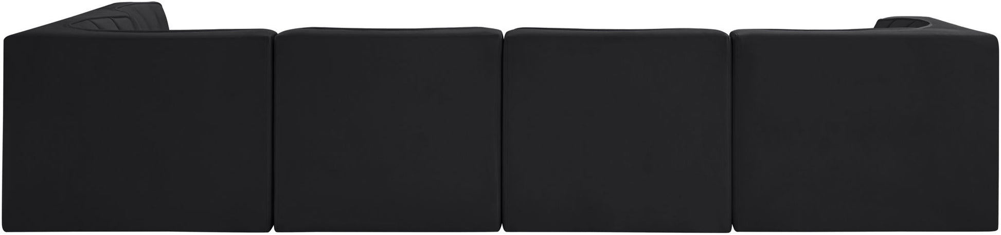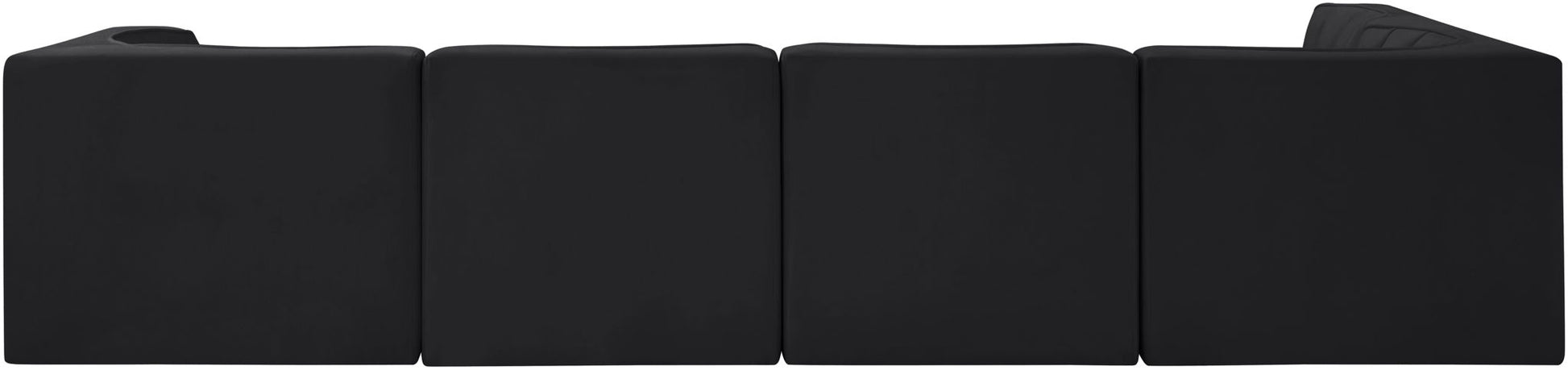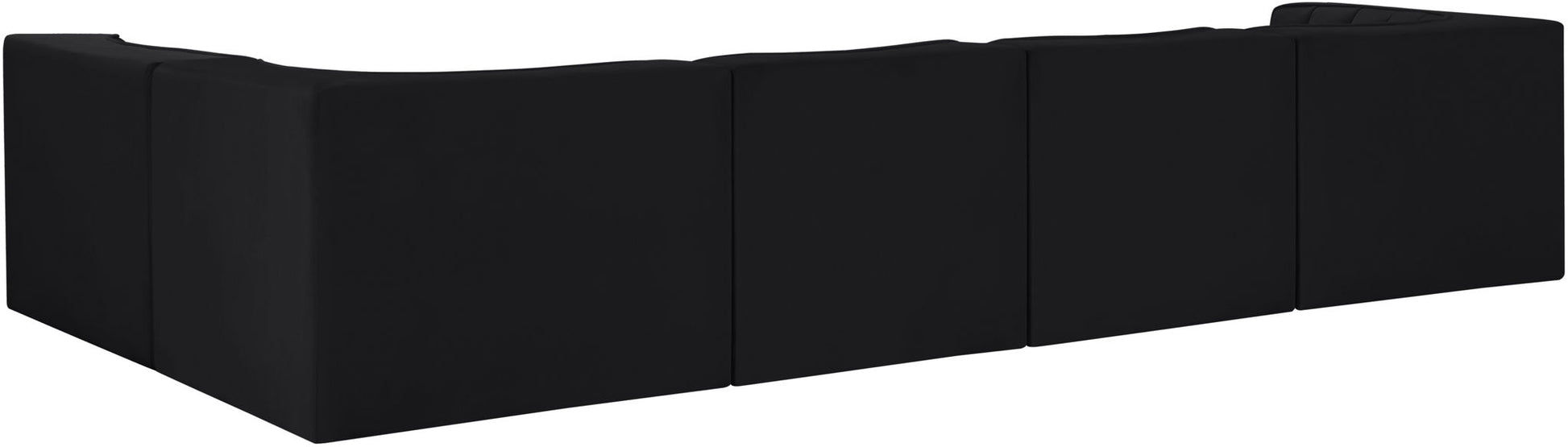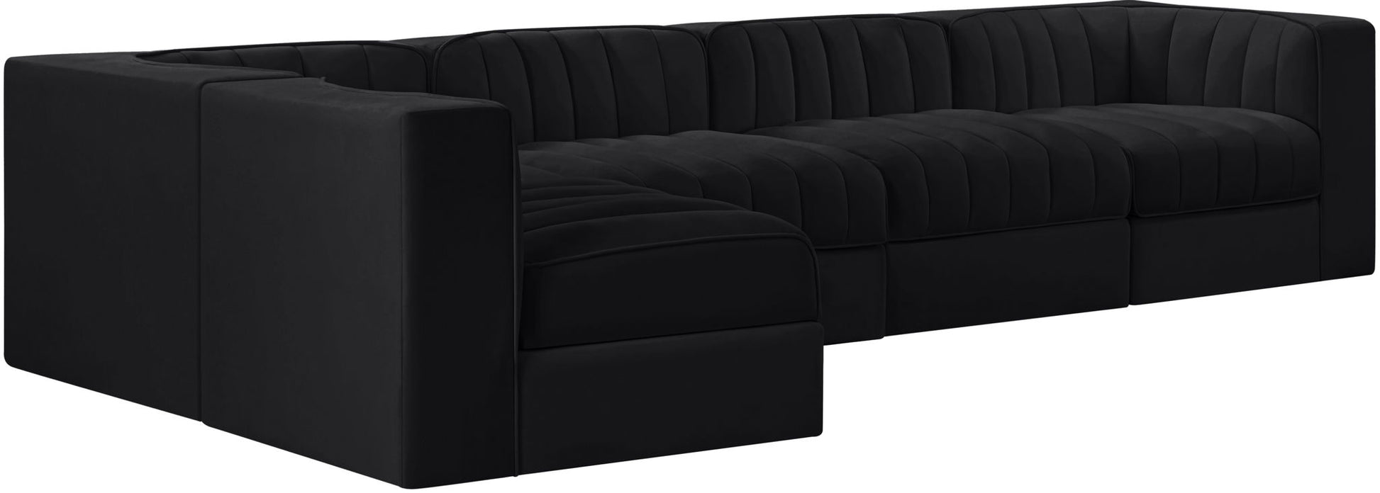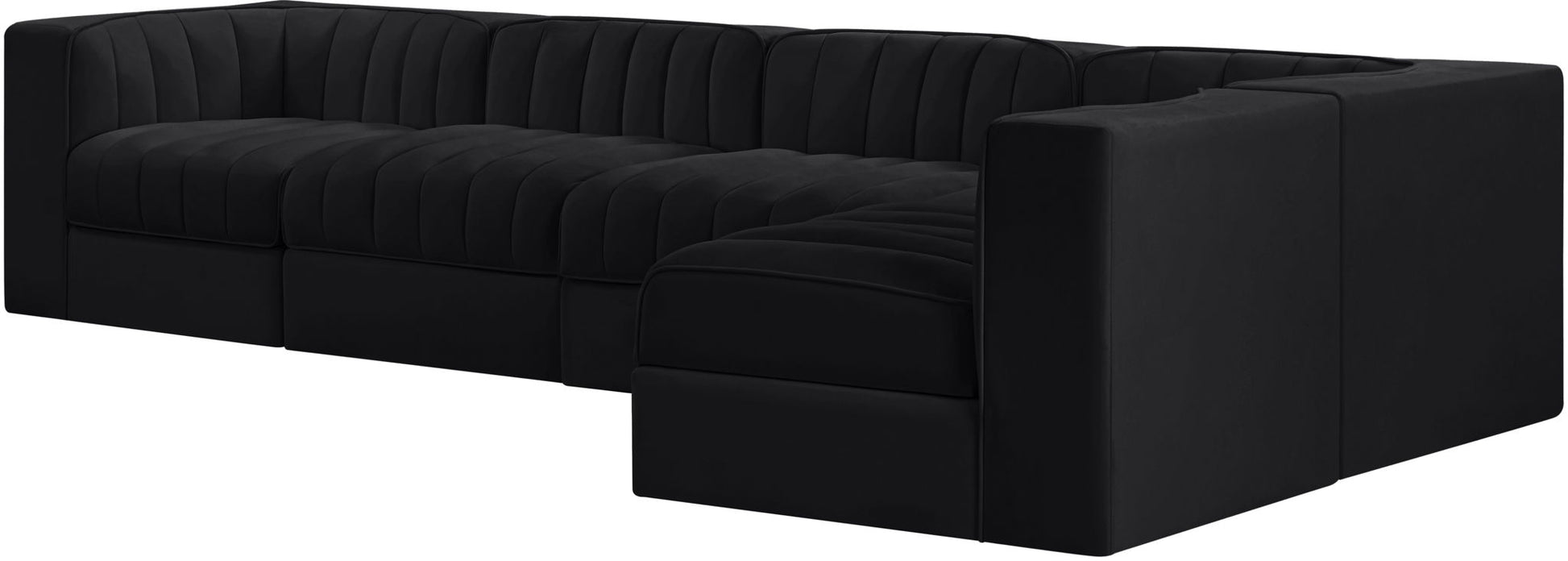 Rummi - Velvet Performance Fabric Upholstered 5 Piece Modular Sectional, L-Shaped (Right) - Black