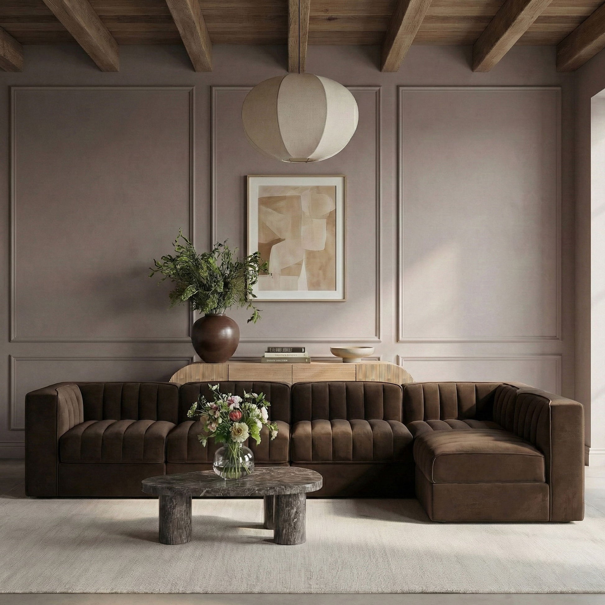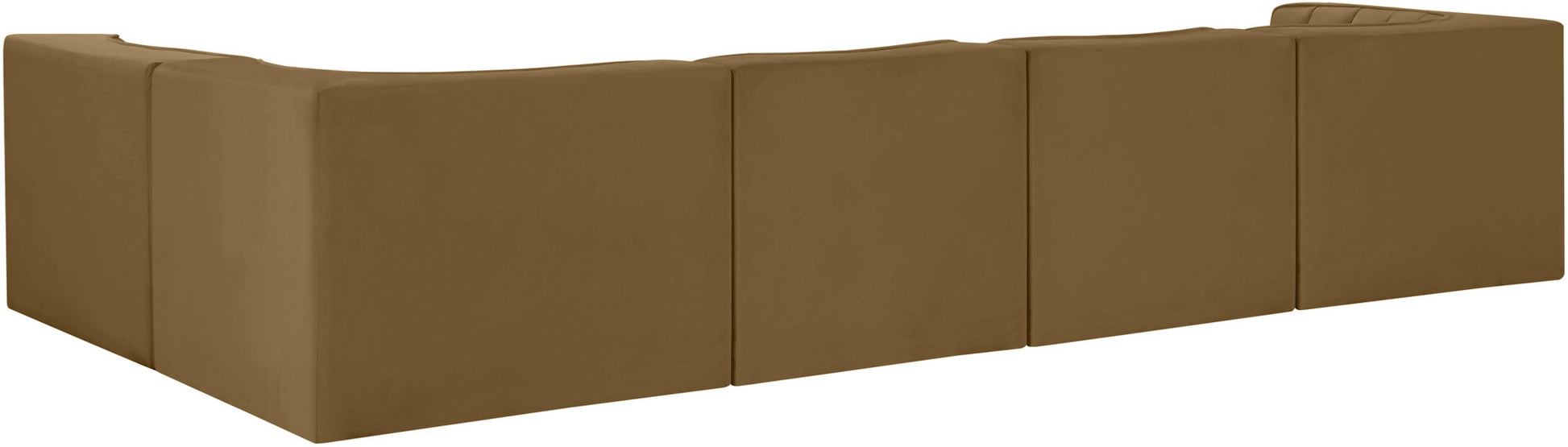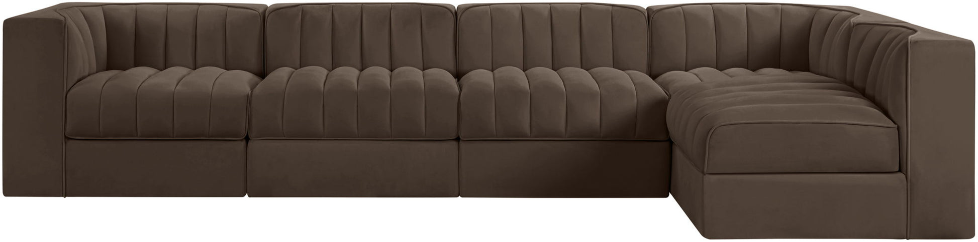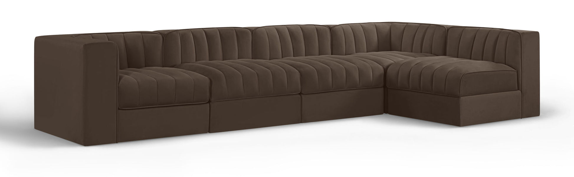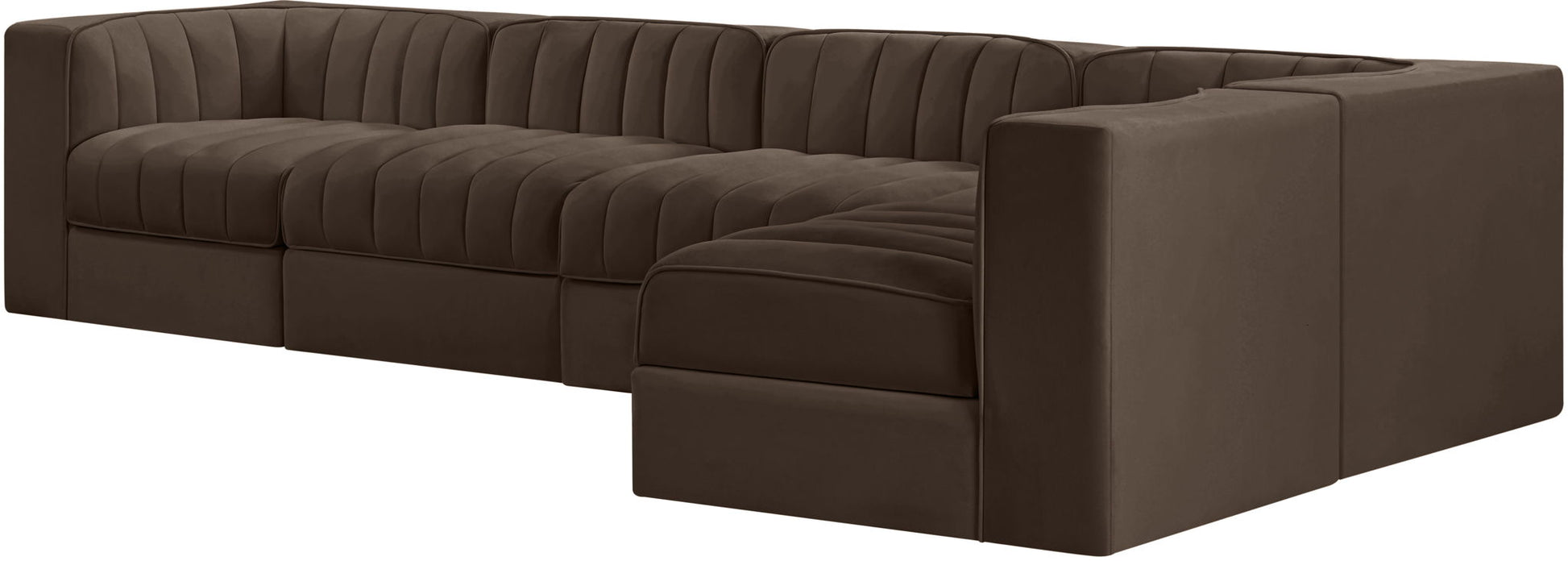 Rummi - Velvet Performance Fabric Upholstered 5 Piece Modular Sectional, L-Shaped (Right) - Brown