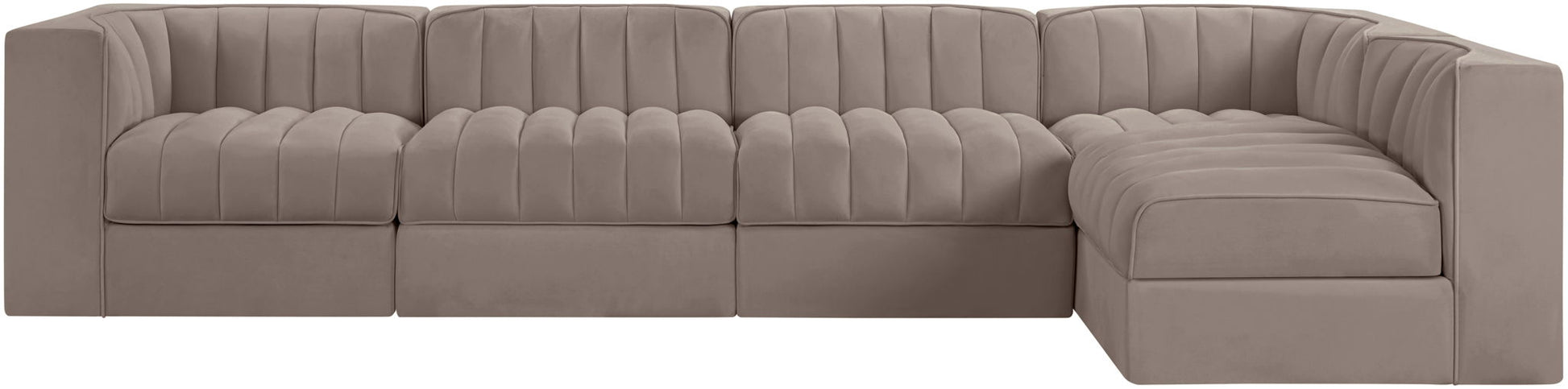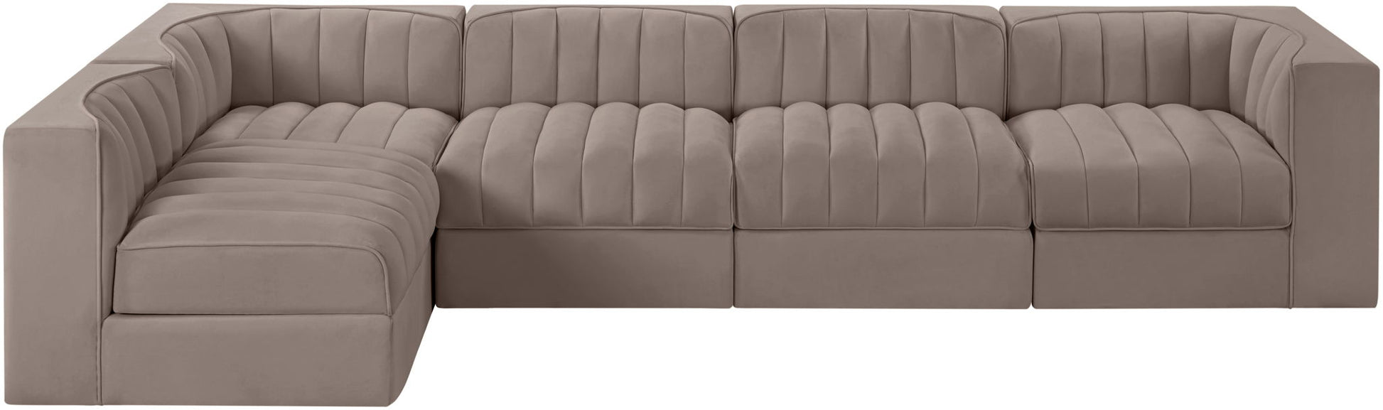 Rummi - Velvet Performance Fabric Upholstered 5 Piece Modular Sectional, L-Shaped (Right) - Taupe