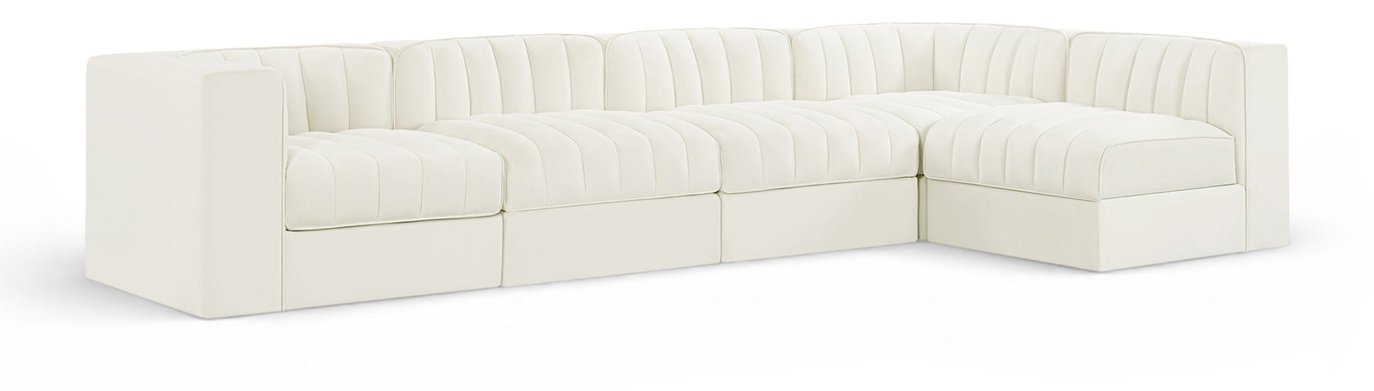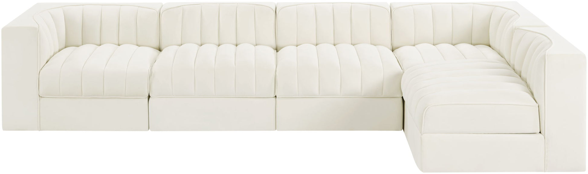 Rummi - Velvet Performance Fabric Upholstered 5 Piece Modular Sectional, L-Shaped (Right) - Cream