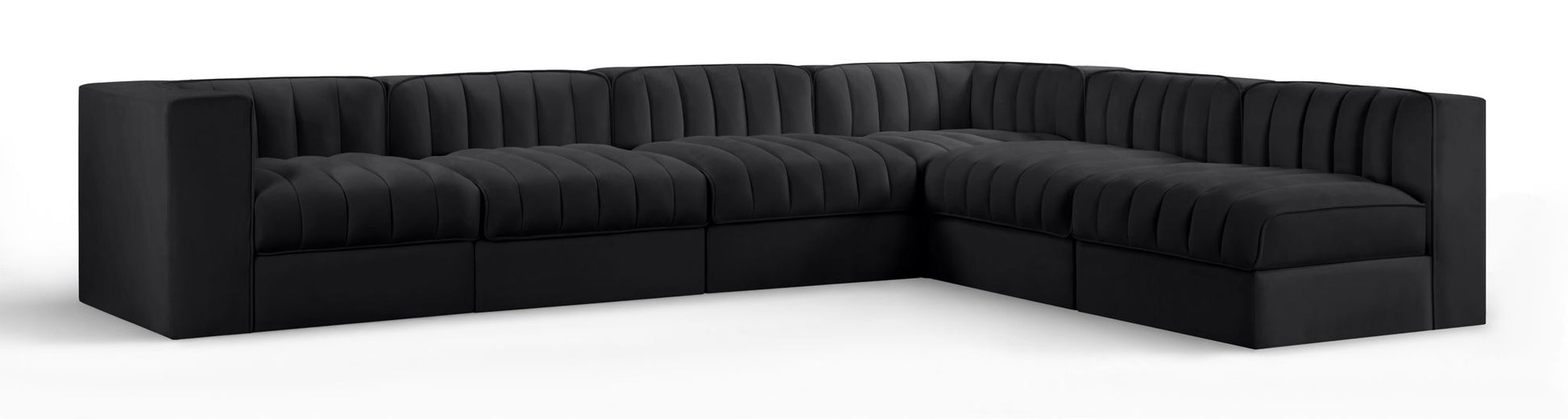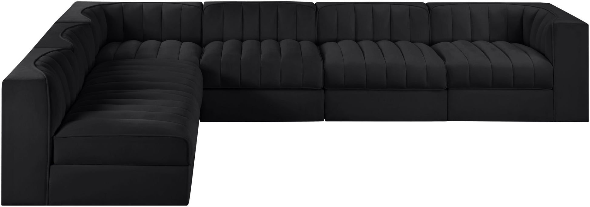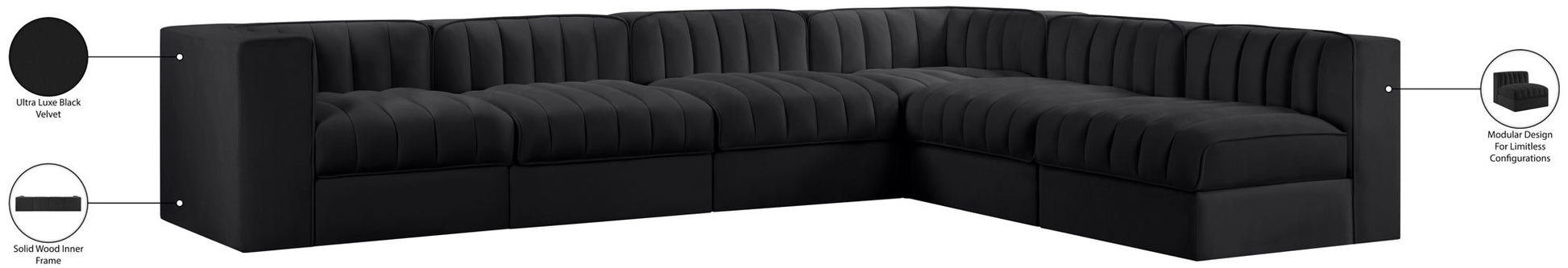 Rummi - Velvet Performance Fabric Upholstered 6 Piece Modular Sectional - Black