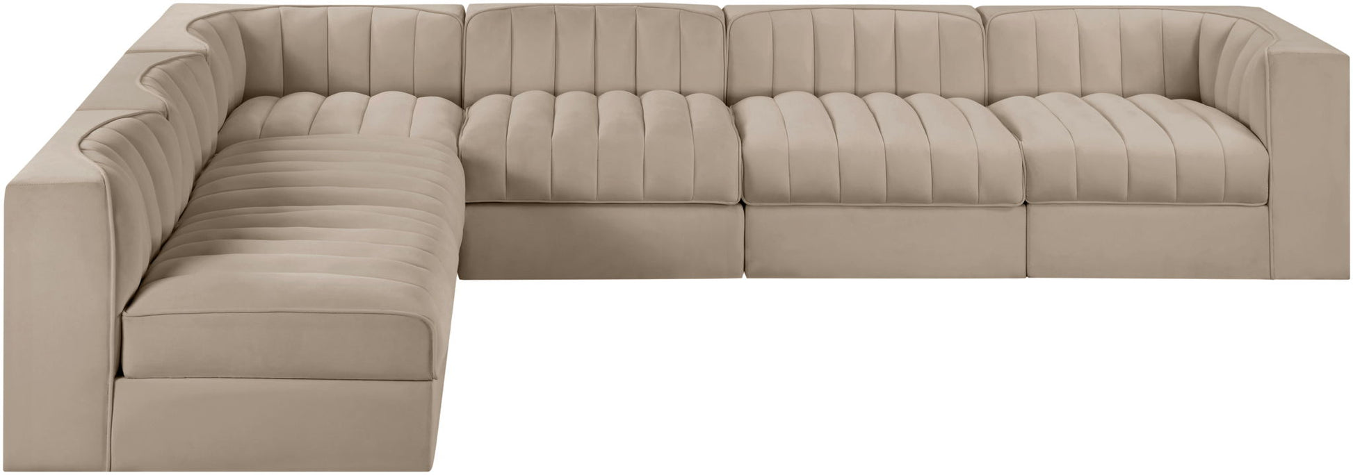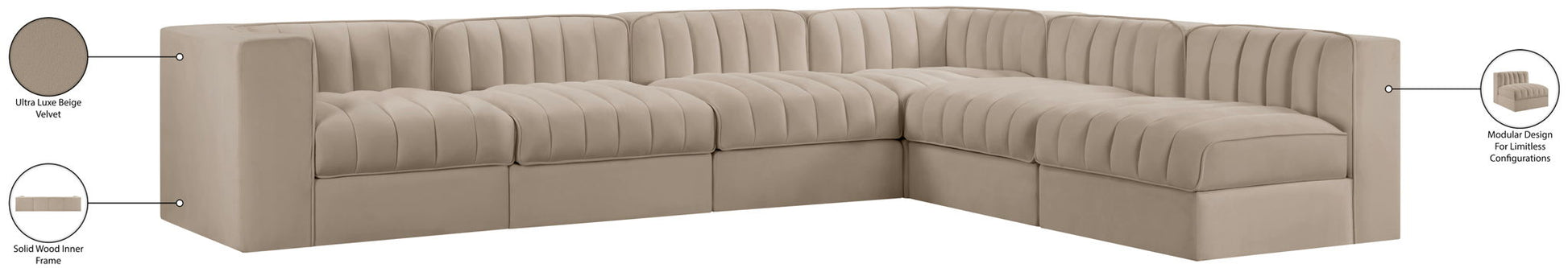 Rummi - Velvet Performance Fabric Upholstered 6 Piece Modular Sectional - Beige