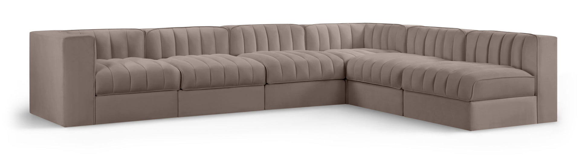 Rummi - Velvet Performance Fabric Upholstered 6 Piece Modular Sectional - Taupe