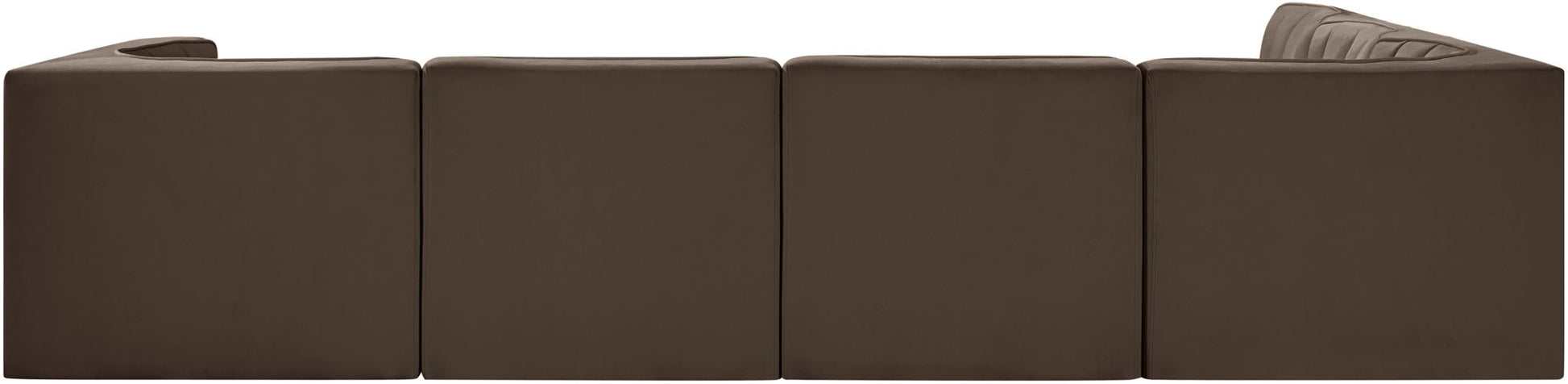 Rummi - Velvet Performance Fabric Upholstered 6 Piece Modular Sectional - Brown