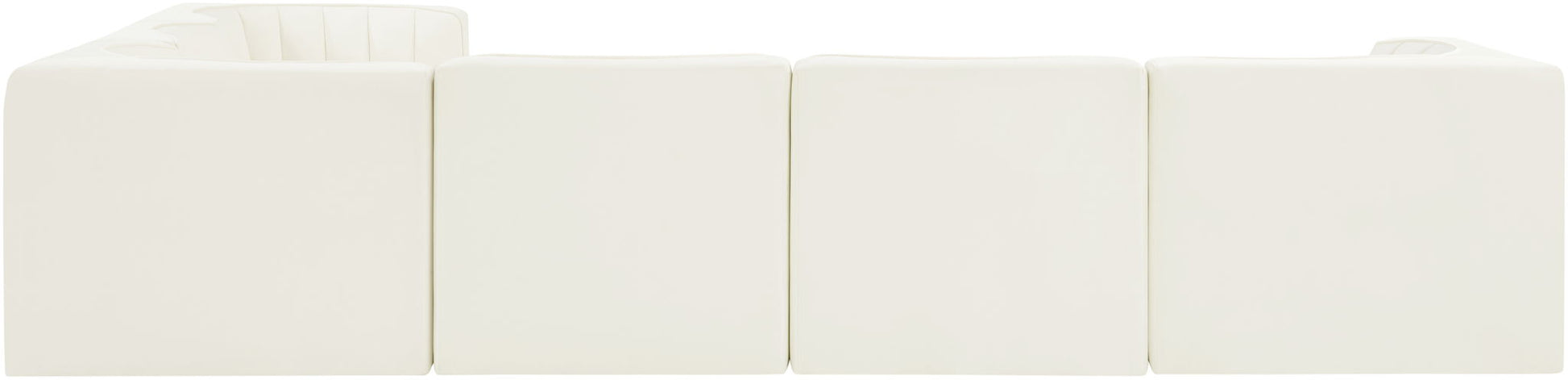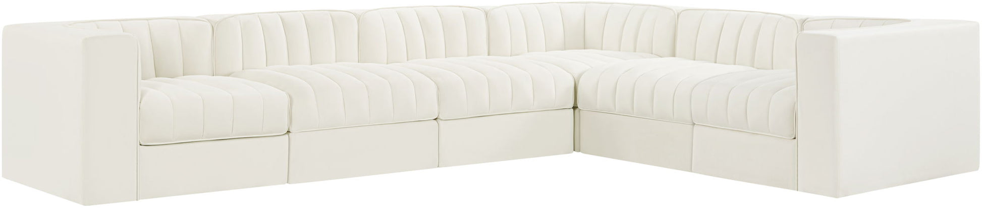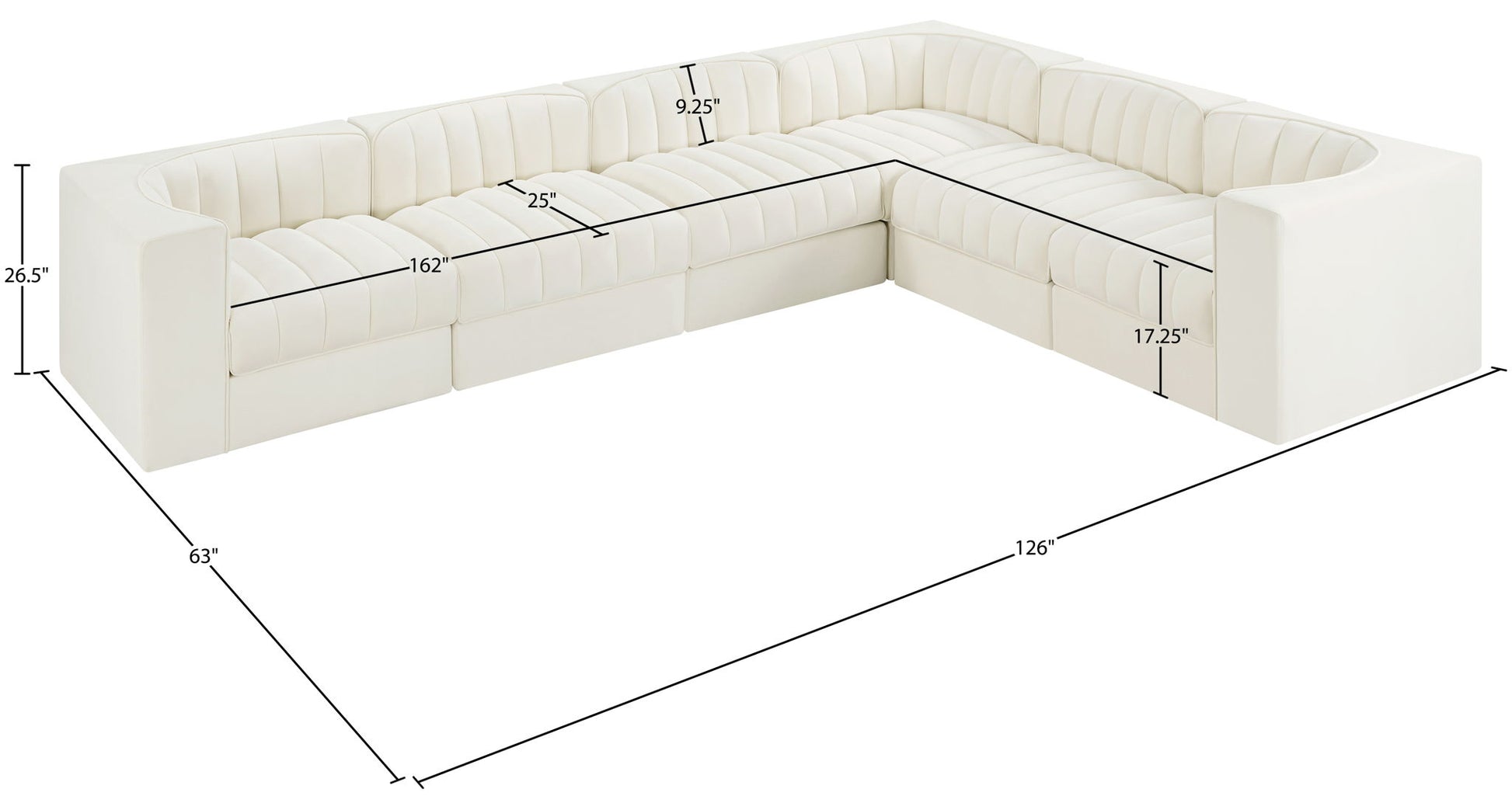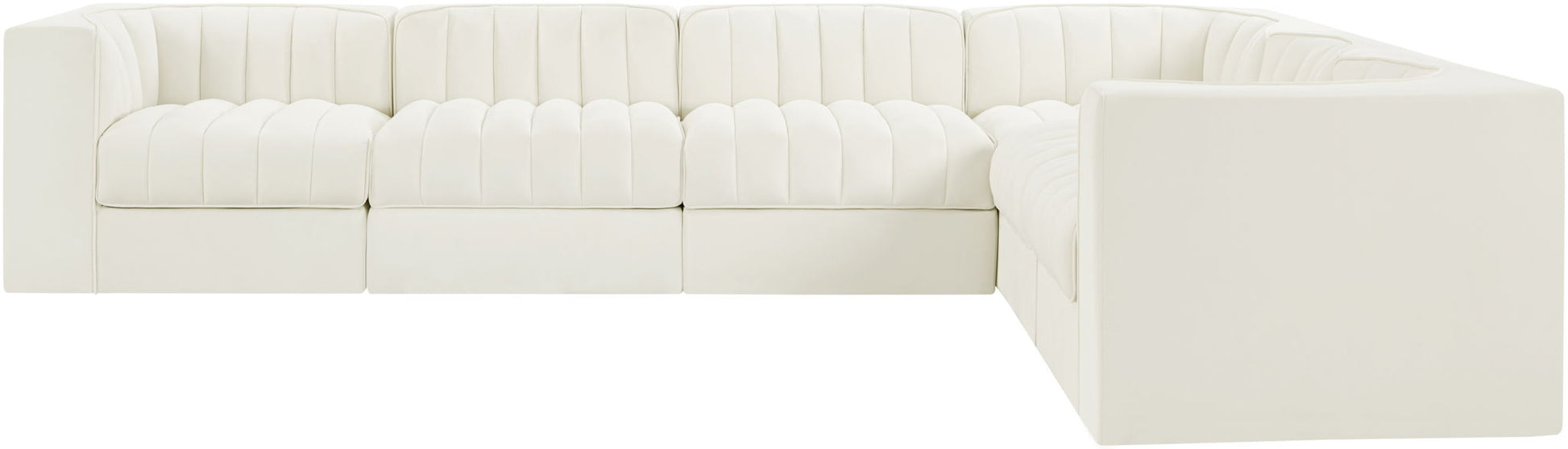 Rummi - Velvet Performance Fabric Upholstered 6 Piece Modular Sectional - Cream
