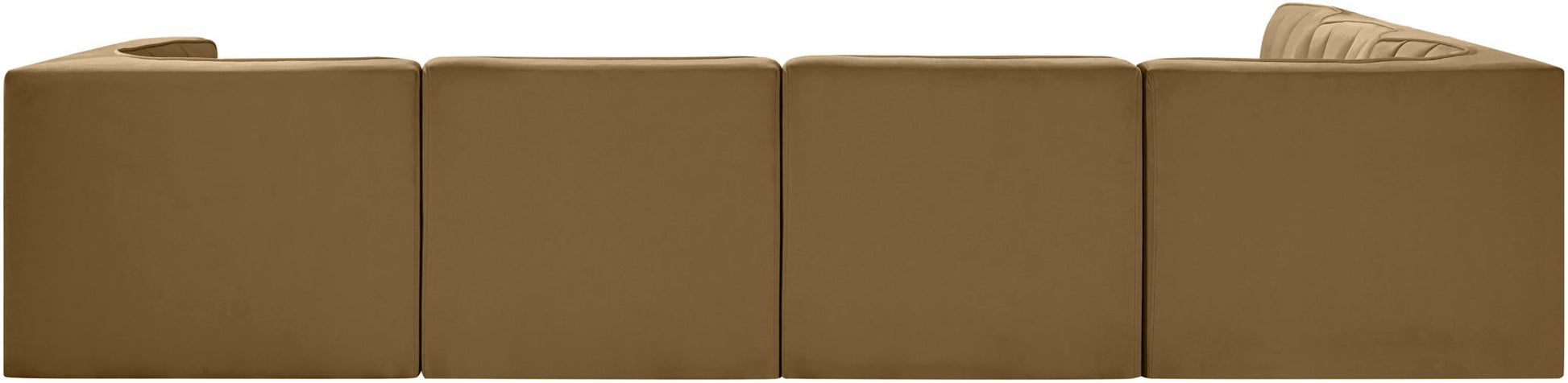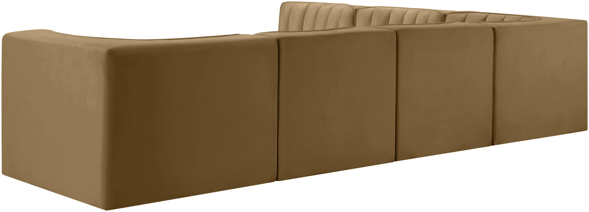 Rummi - Velvet Performance Fabric Upholstered 6 Piece Modular Sectional - Saddle